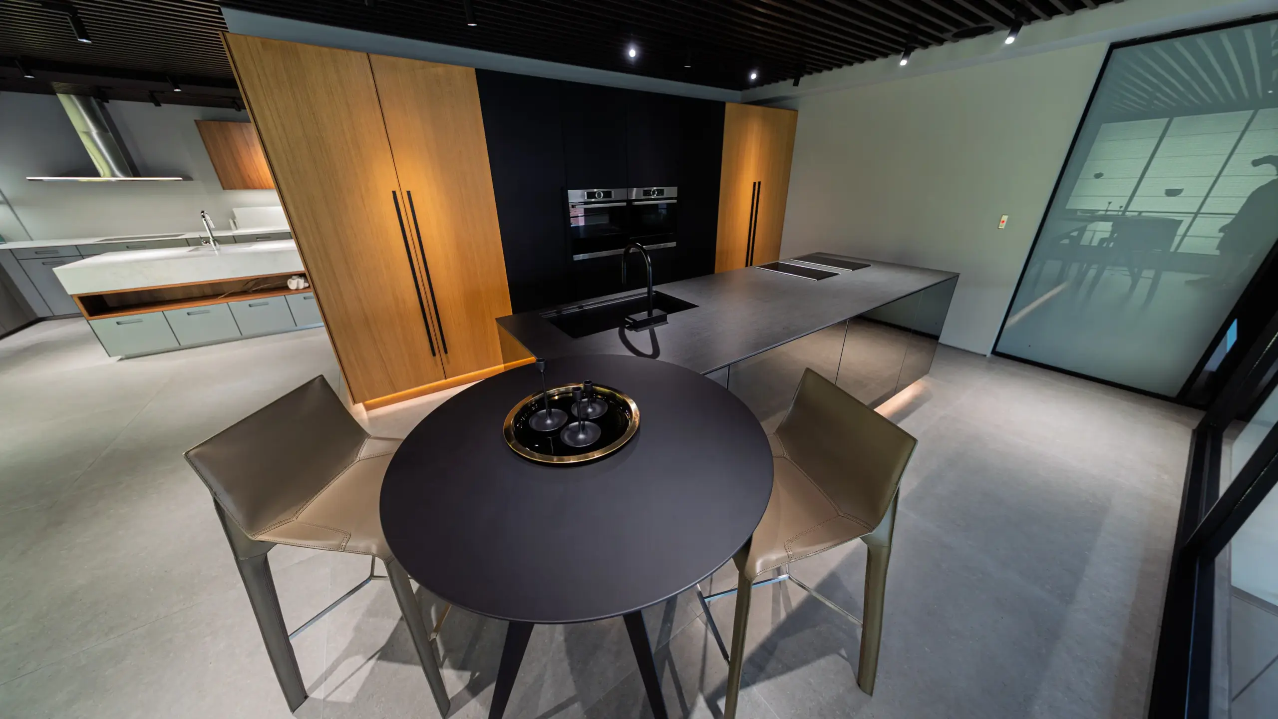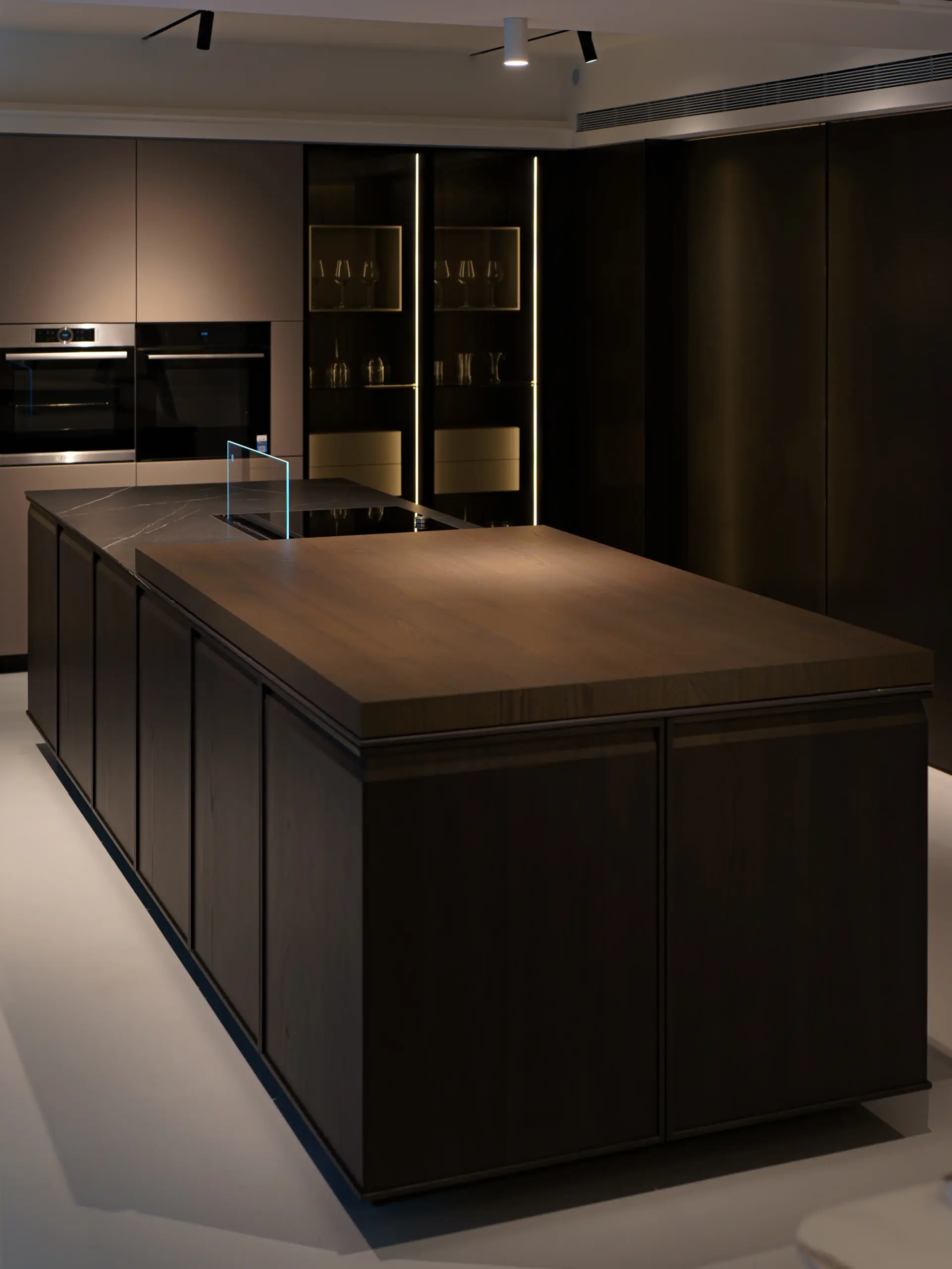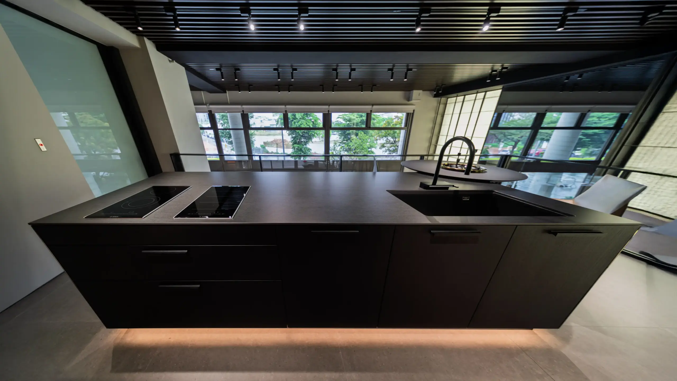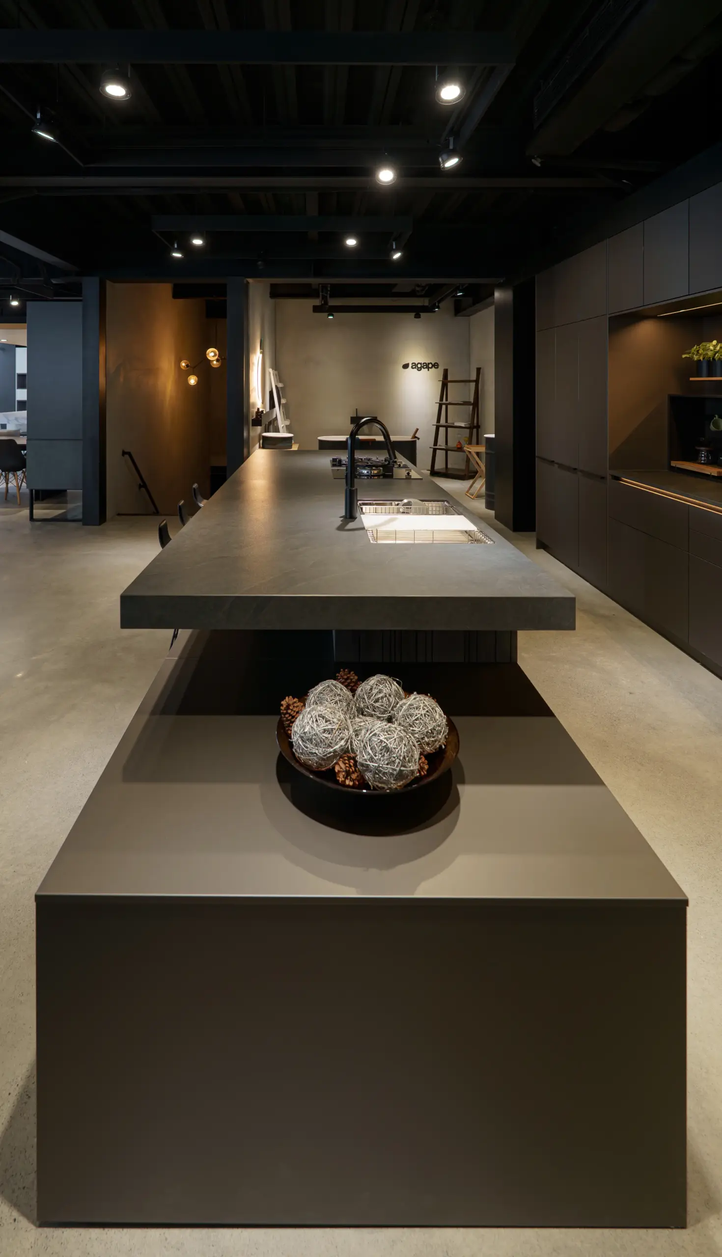 門市展間由呈勖使用義大利LEVEL廚房檯面、中島與會議桌