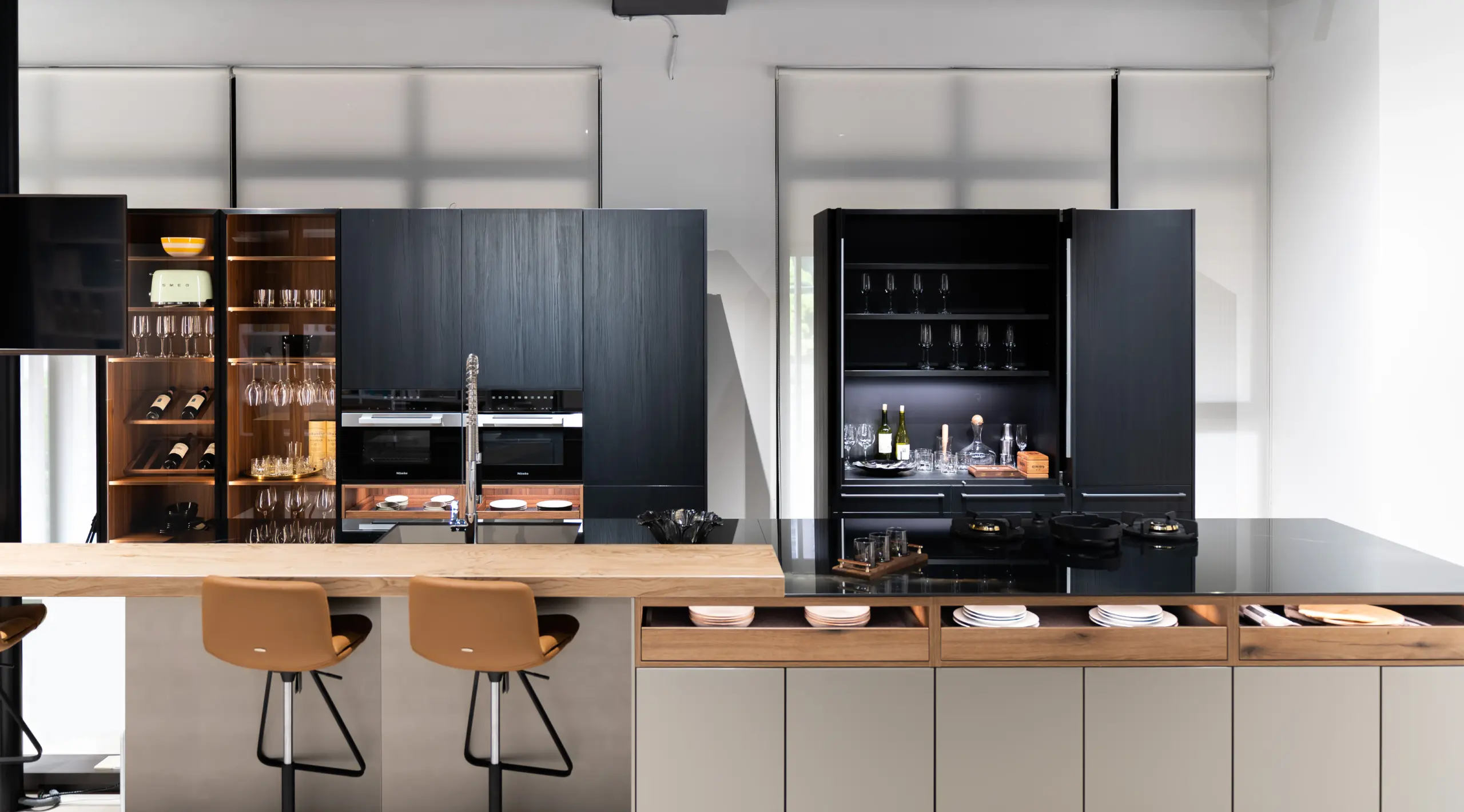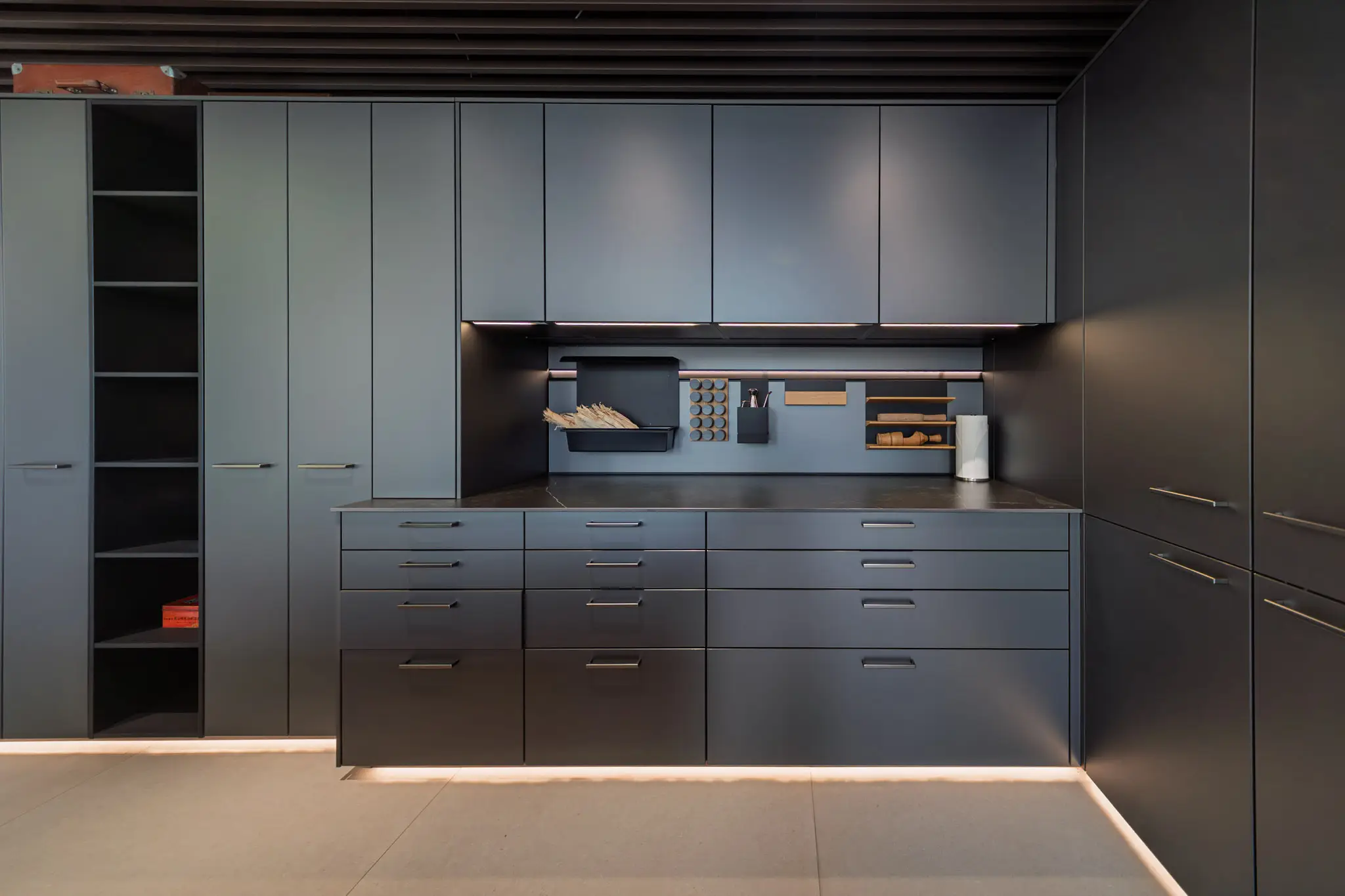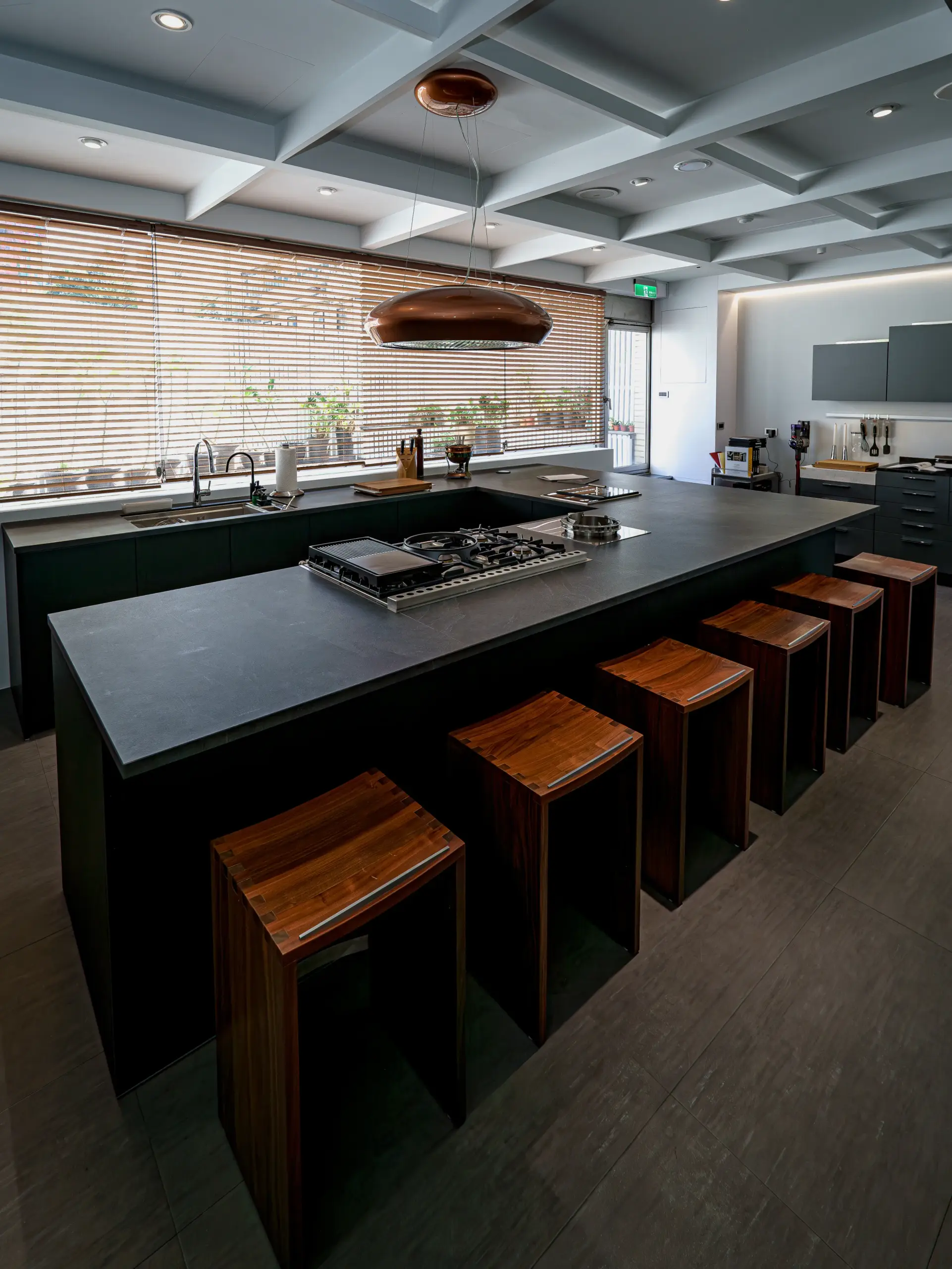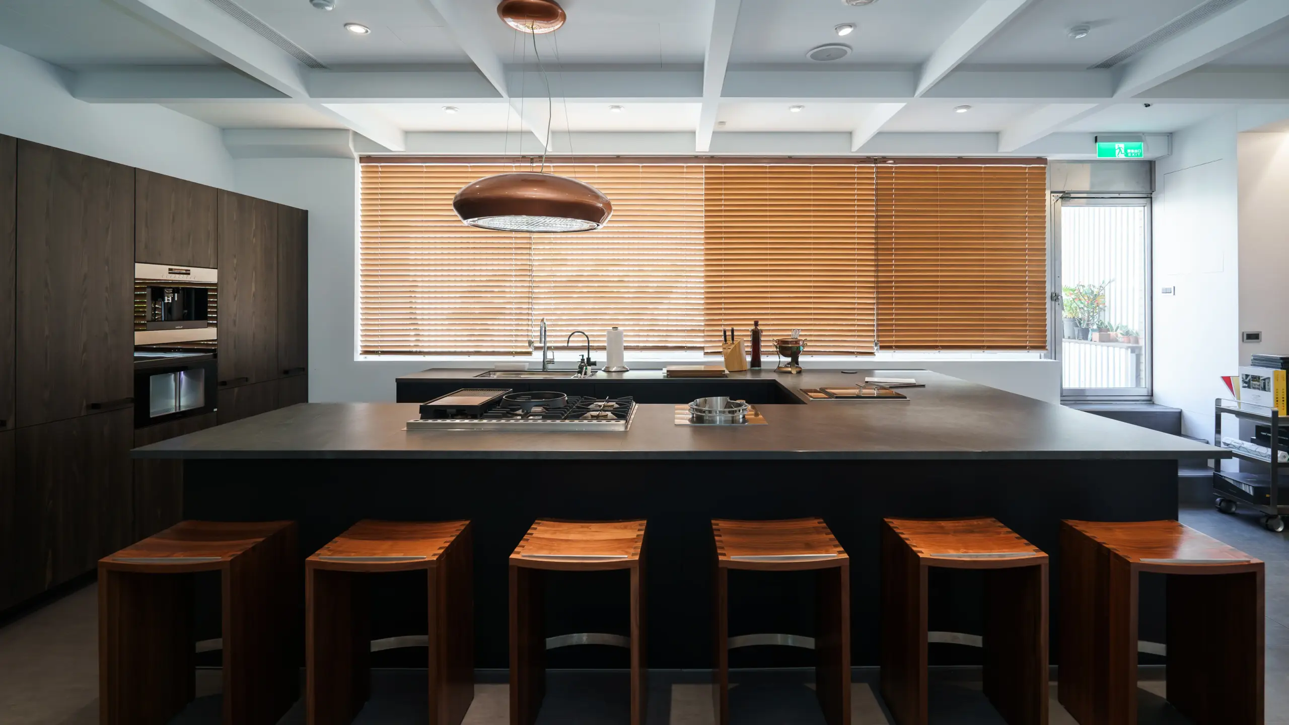門市展間由呈勖使用義大利LEVEL廚房檯面、中島與會議桌