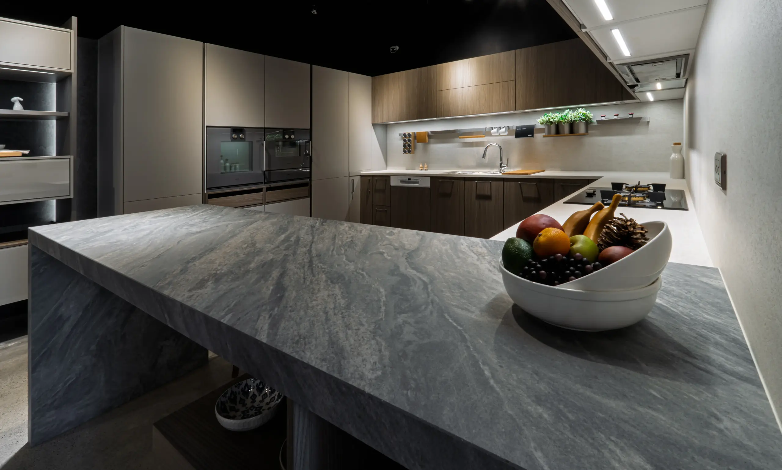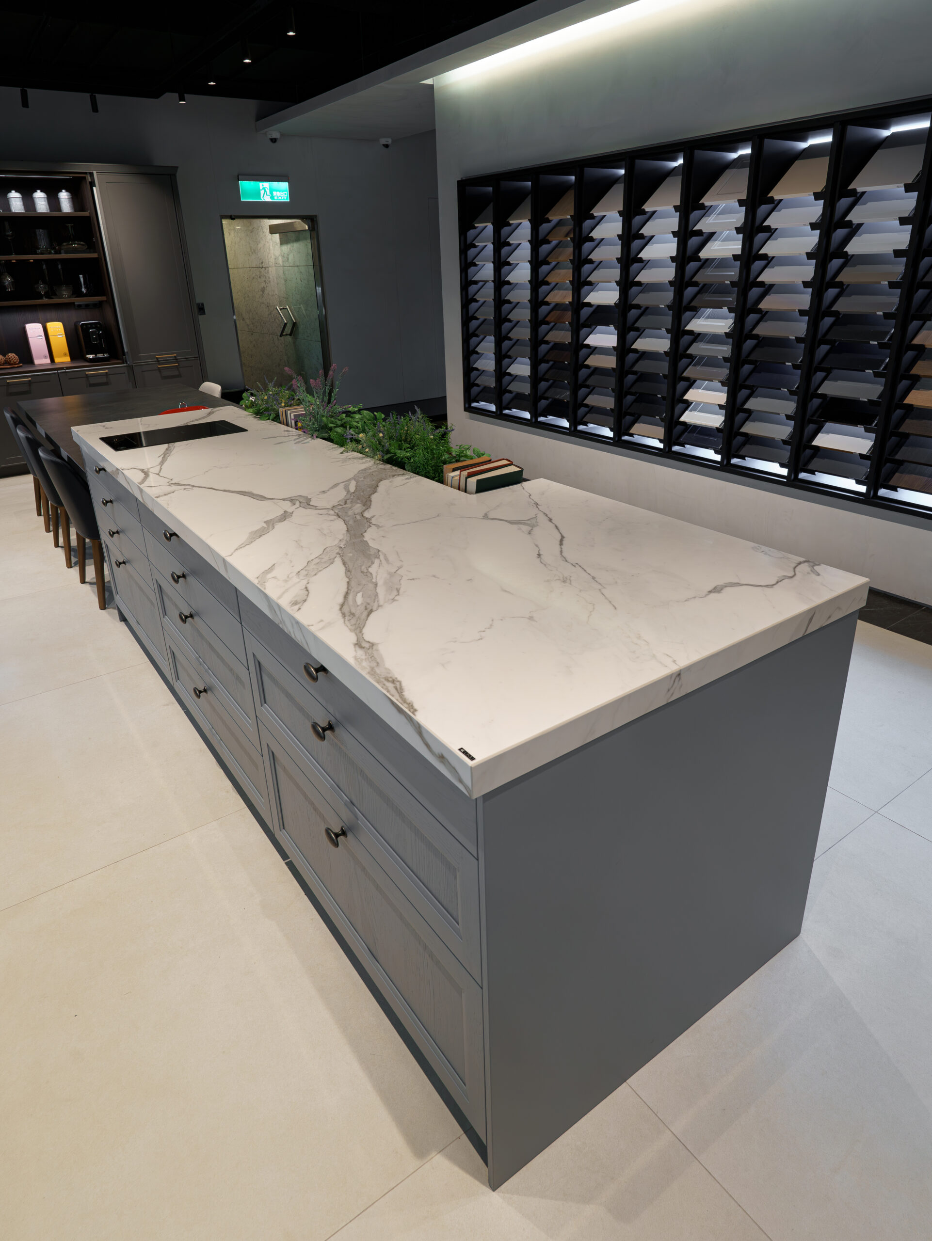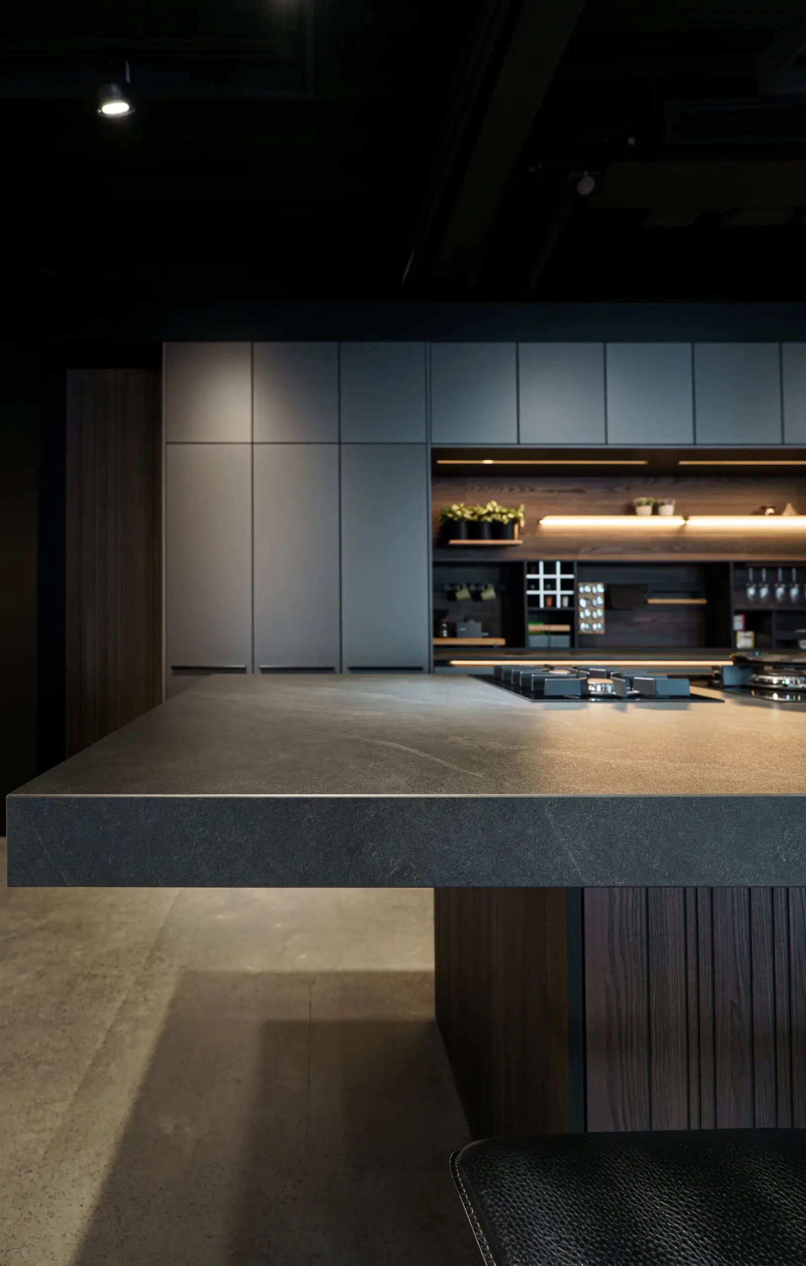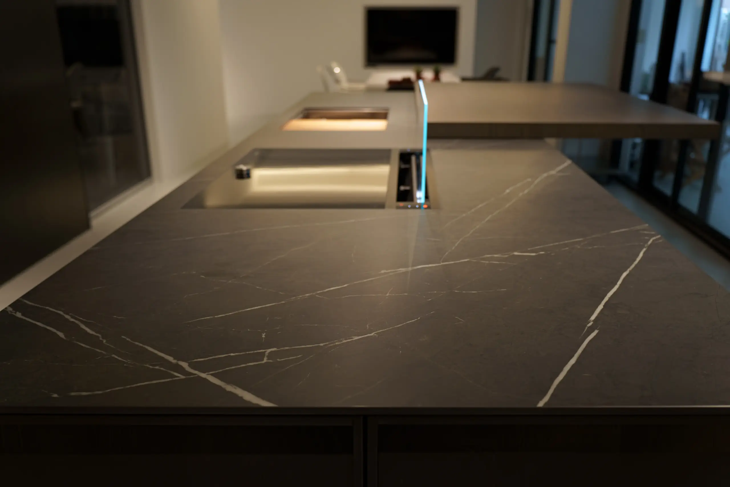 門市展間由呈勖使用義大利LEVEL廚房檯面