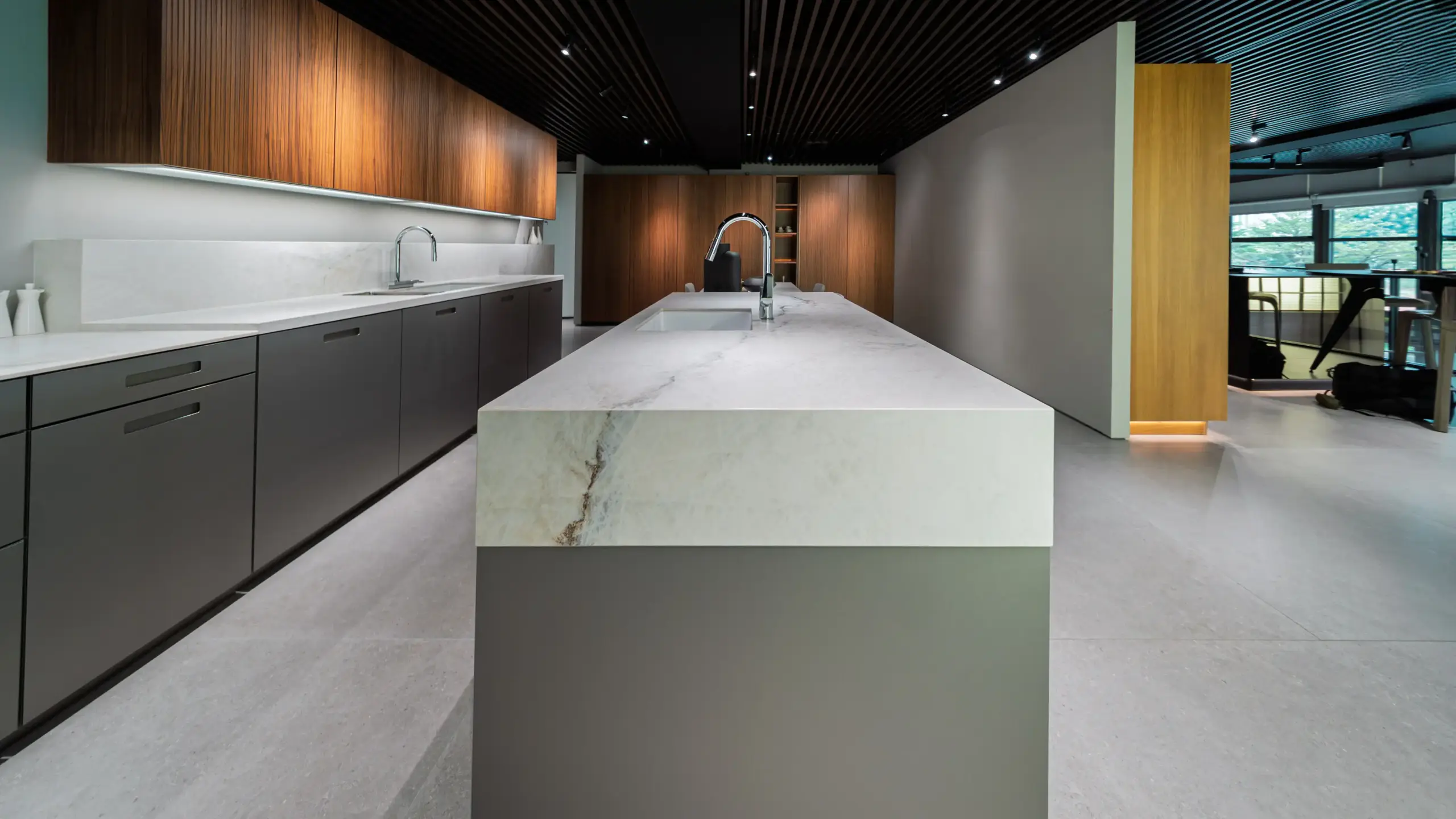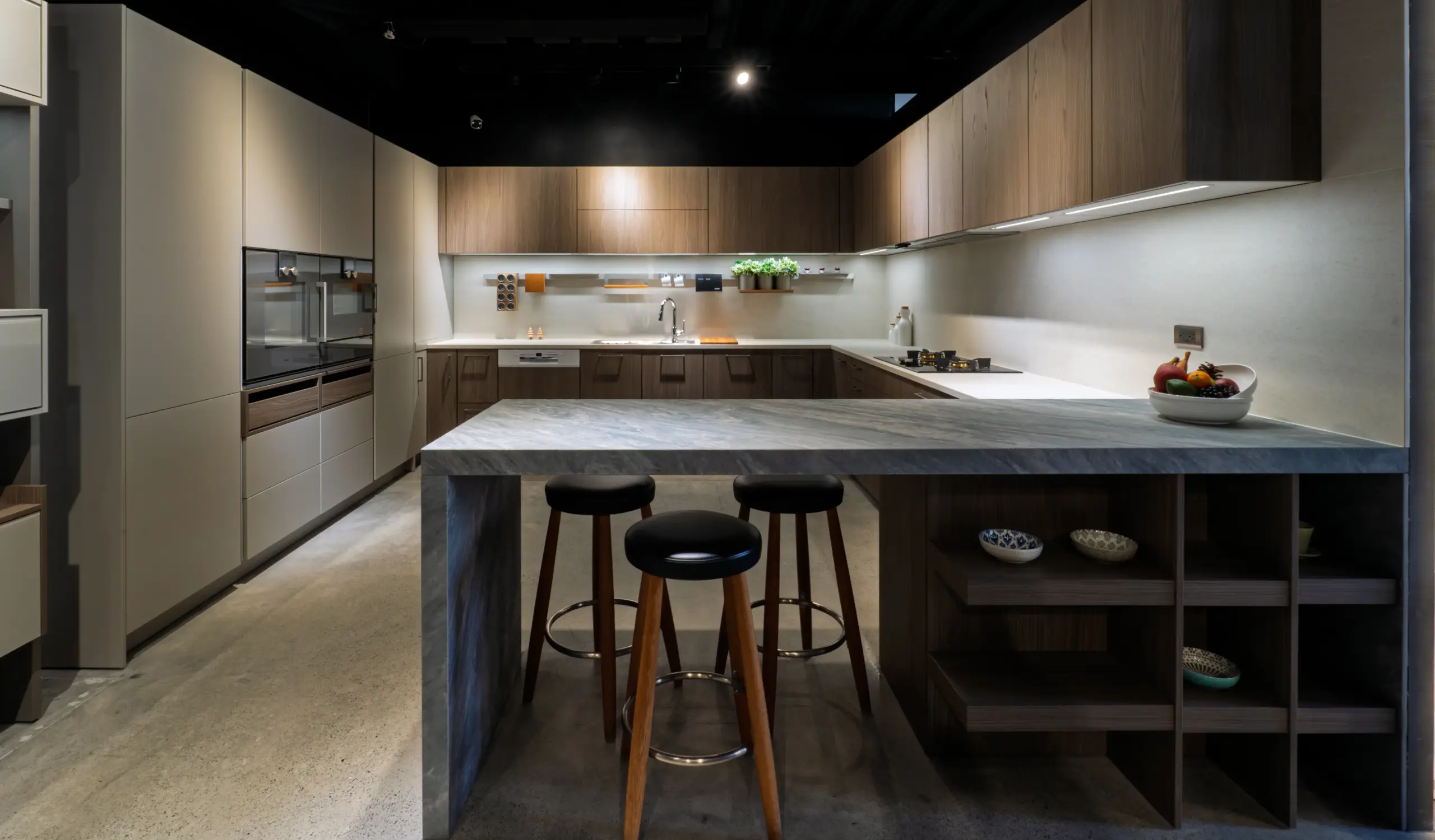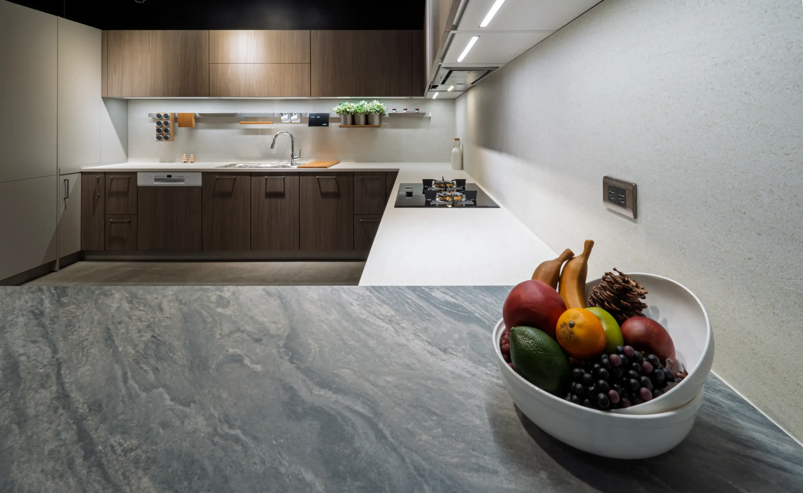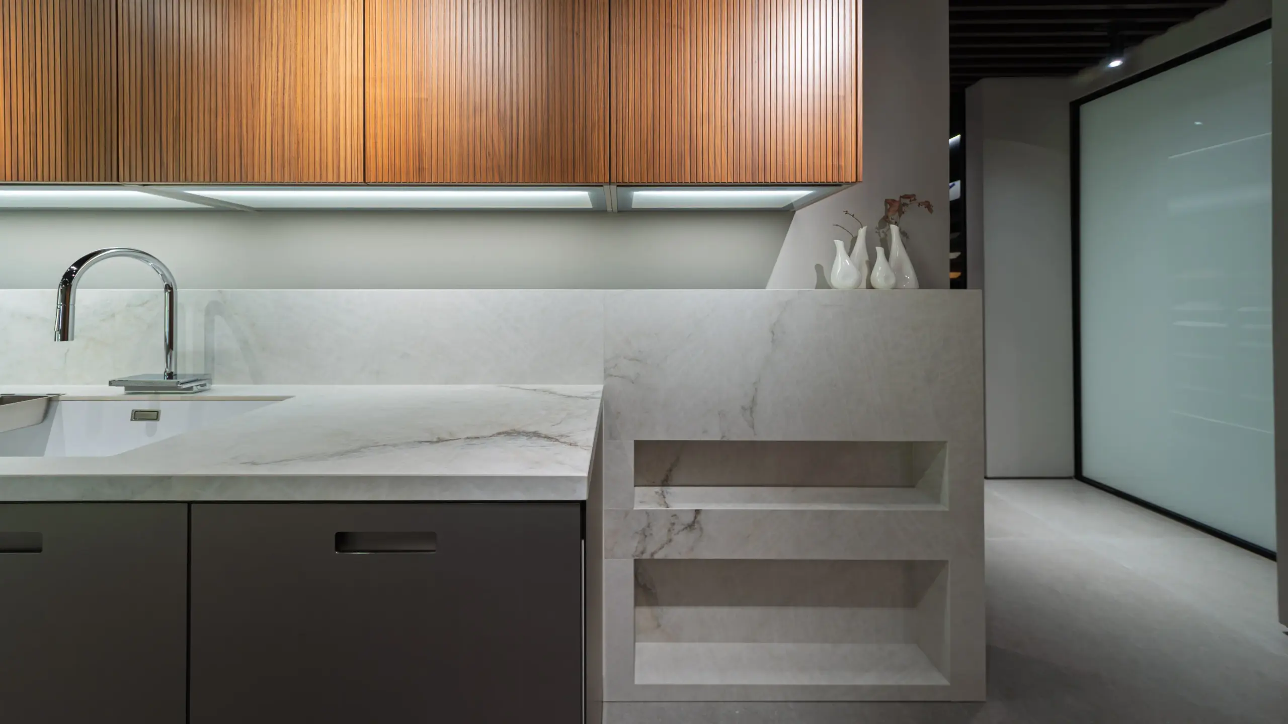 門市展間由呈勖使用義大利LEVEL廚房檯面