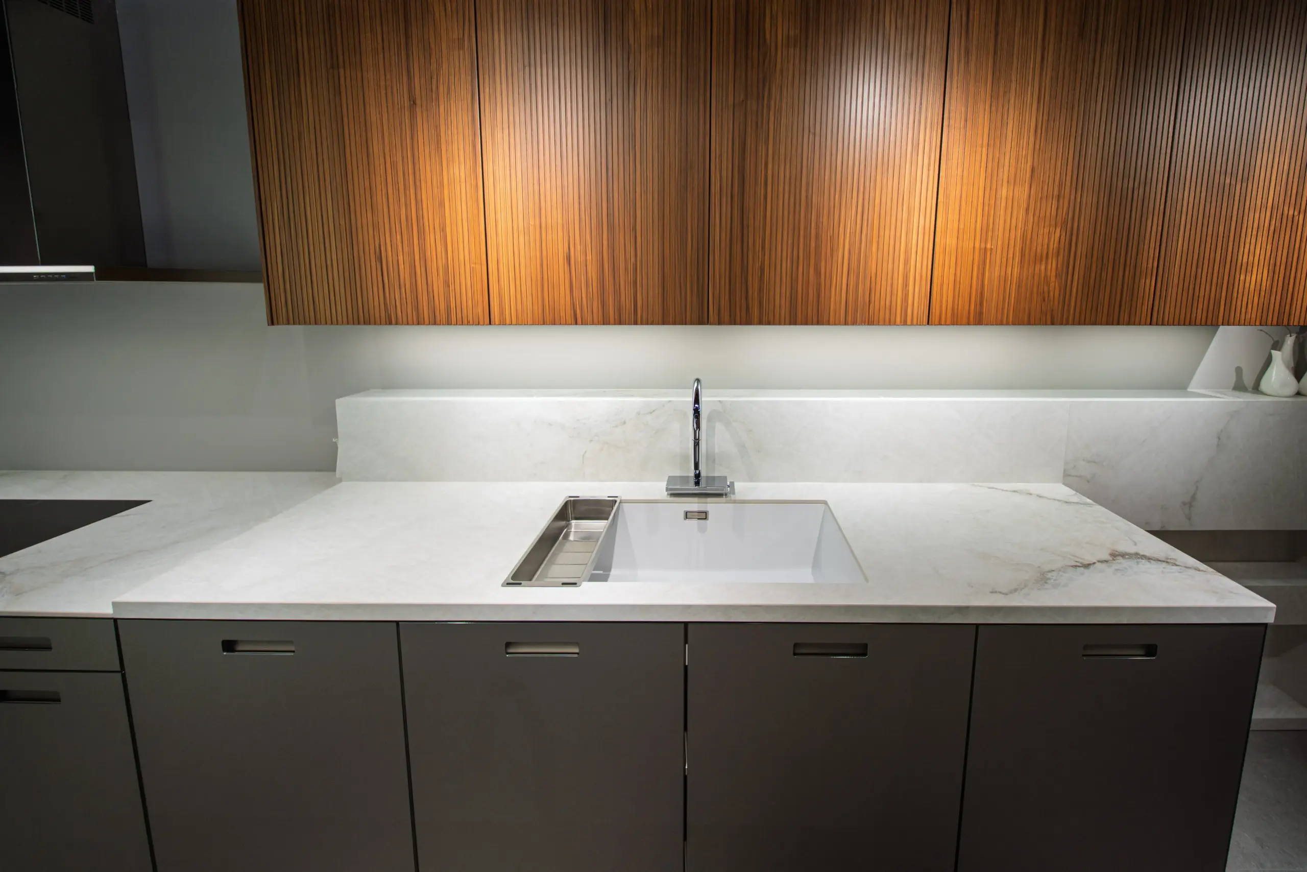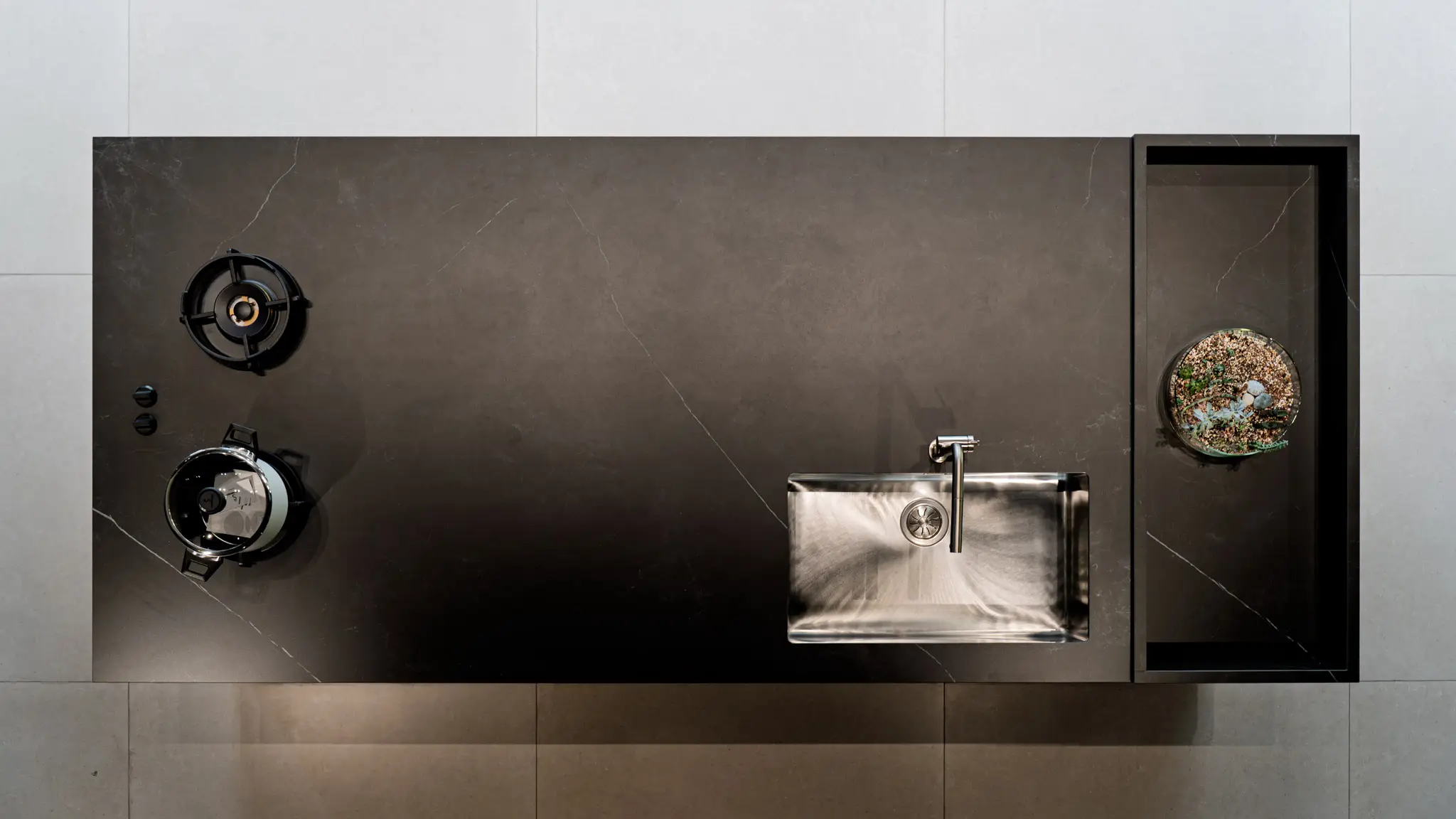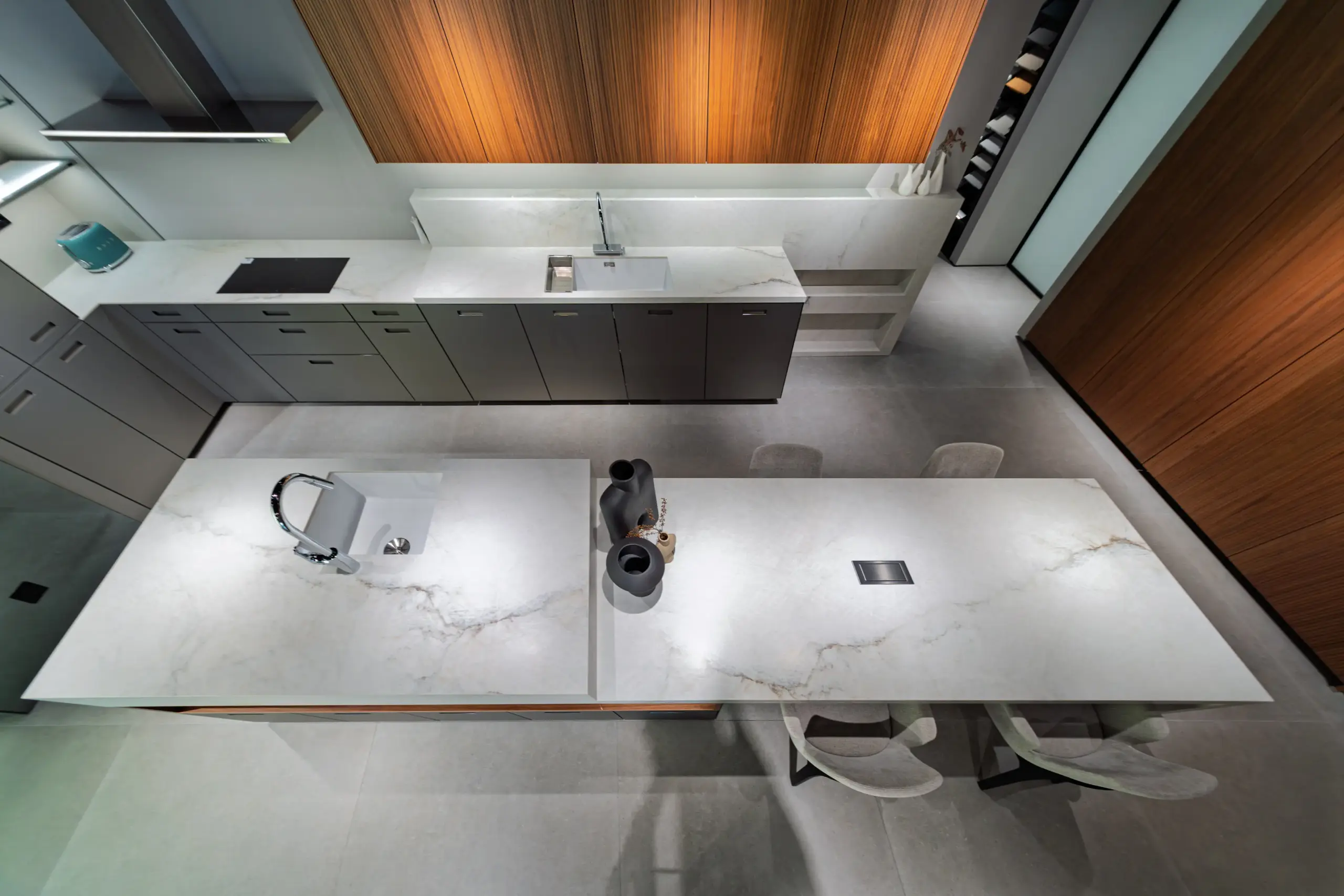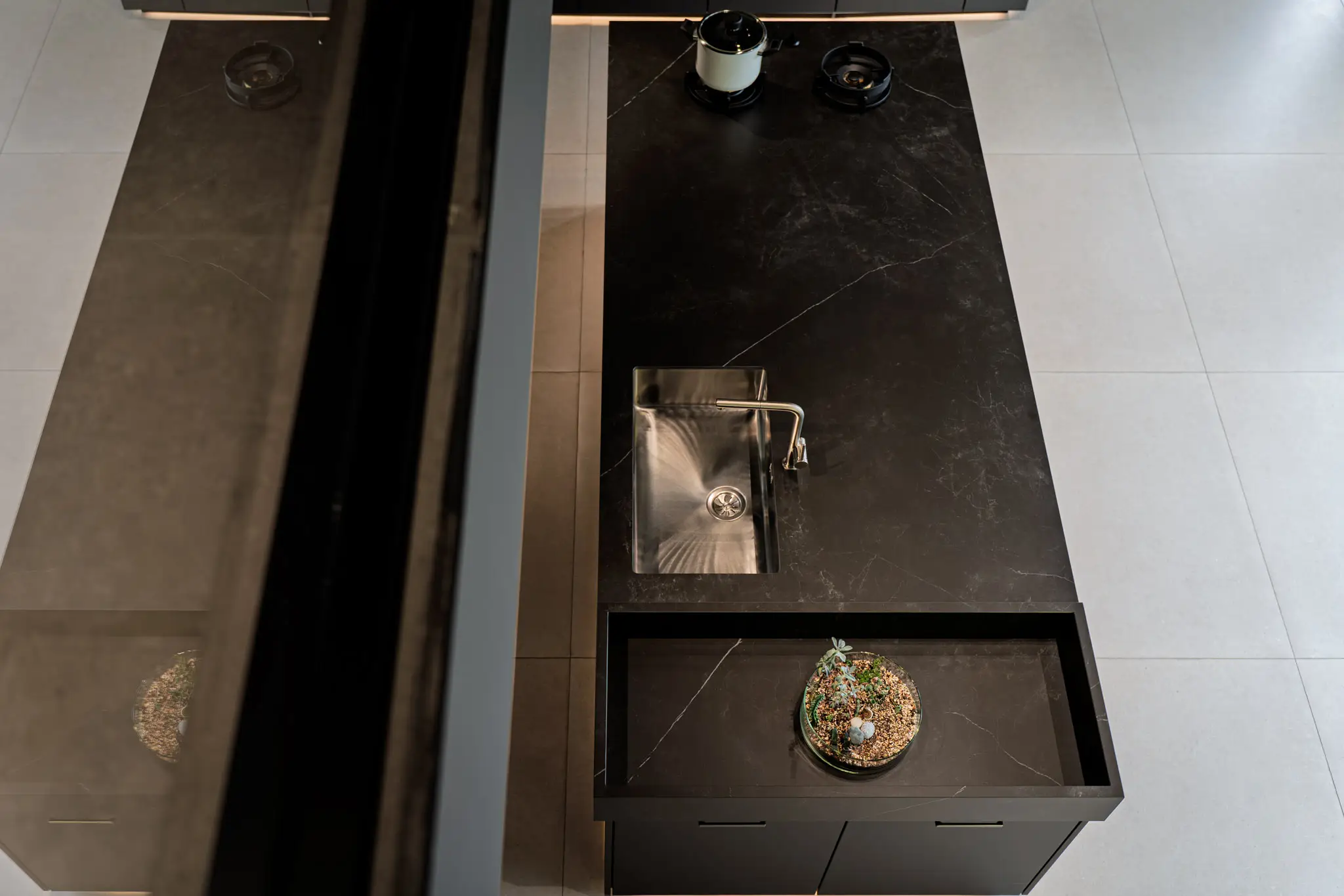 門市展間由呈勖使用義大利LEVEL廚房檯面