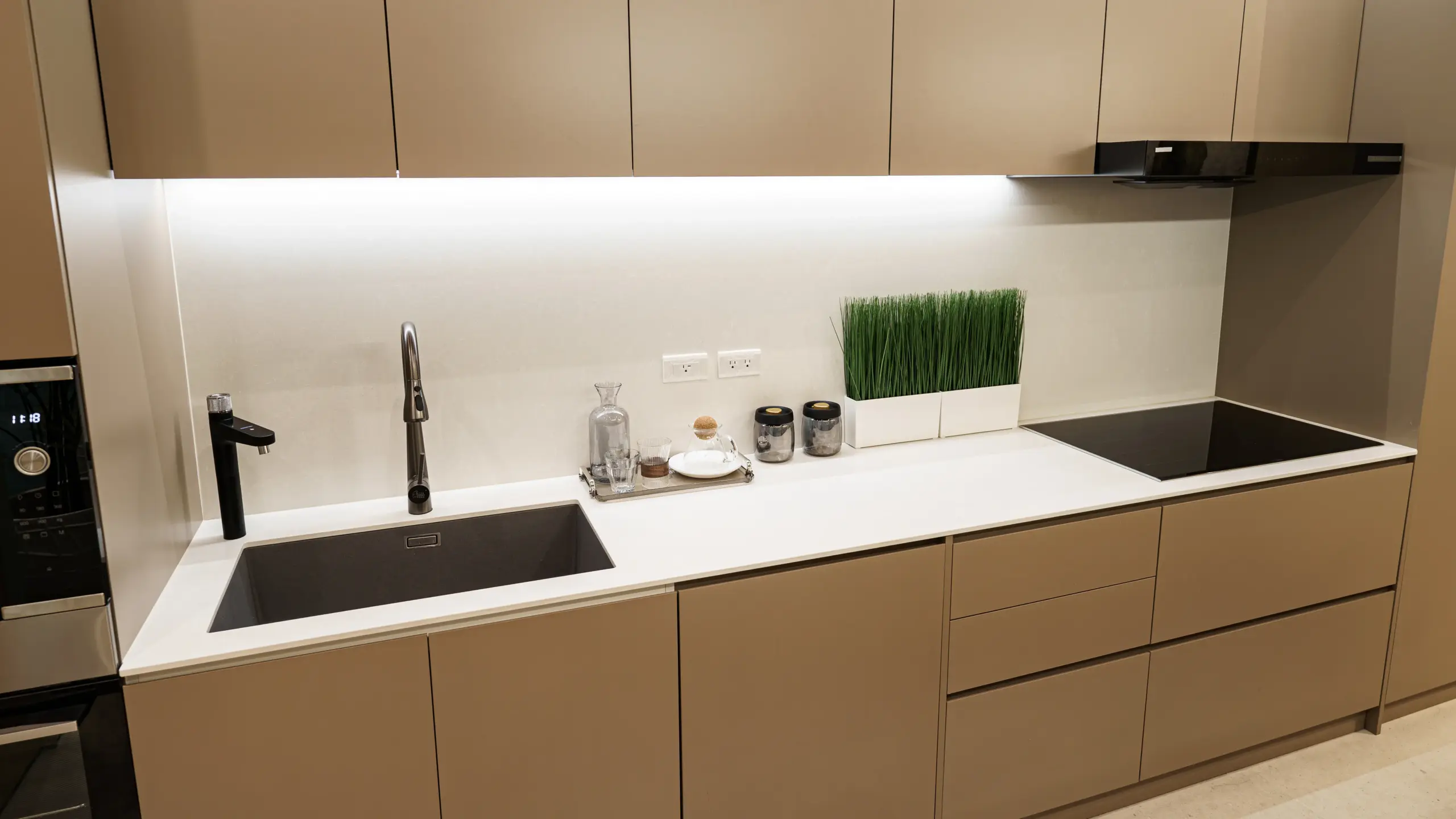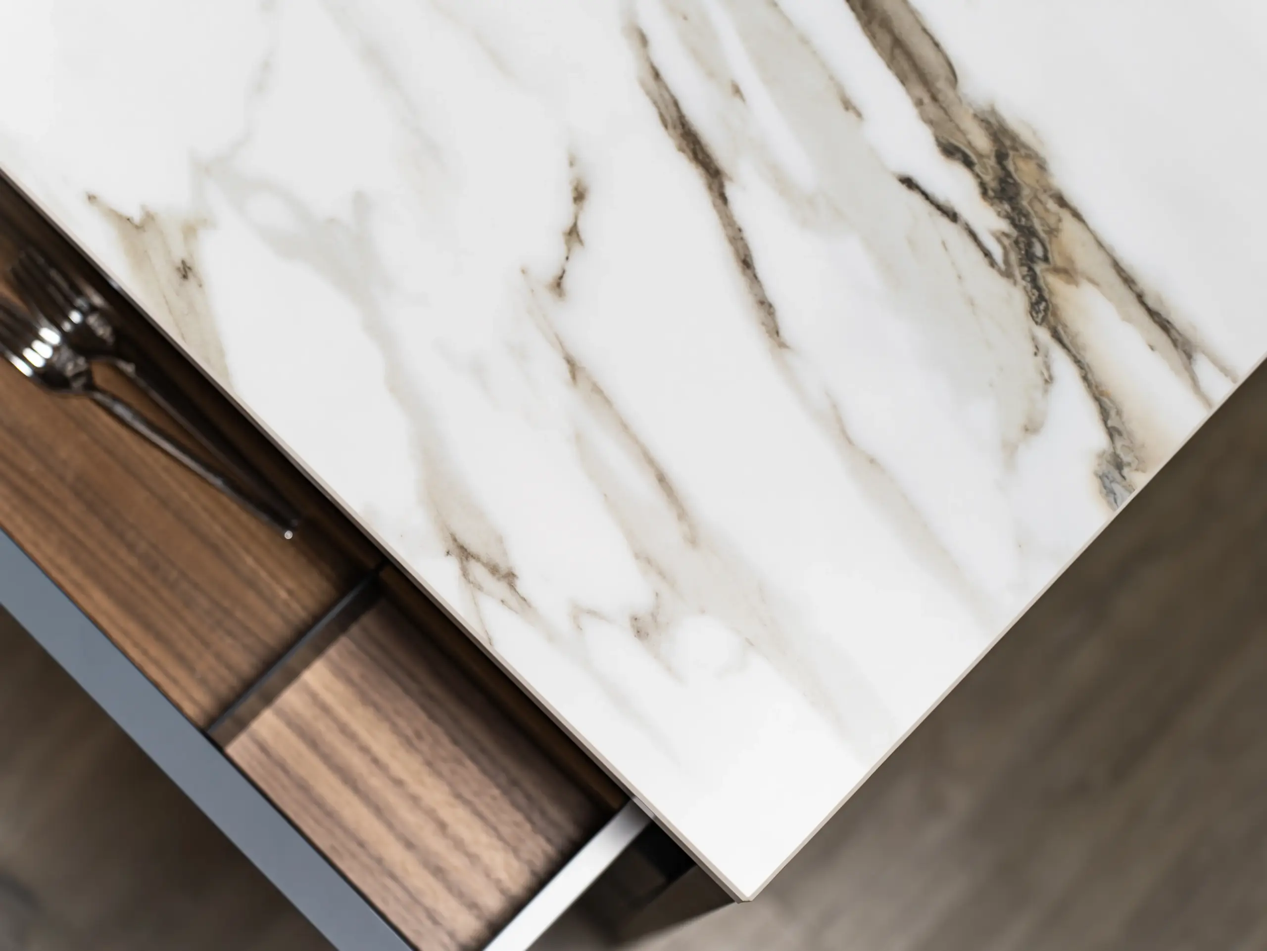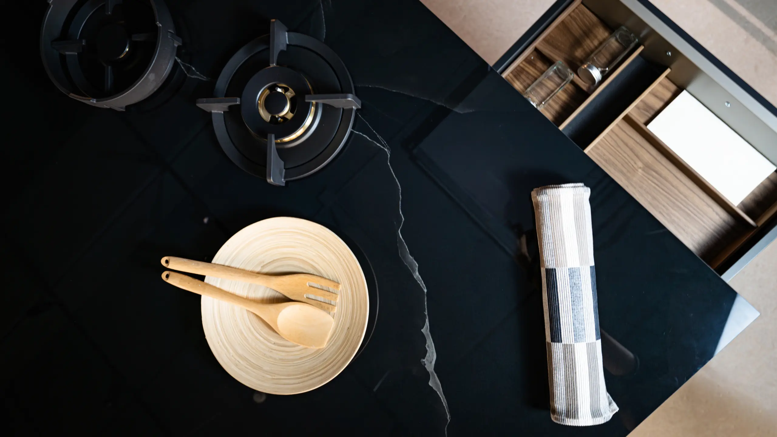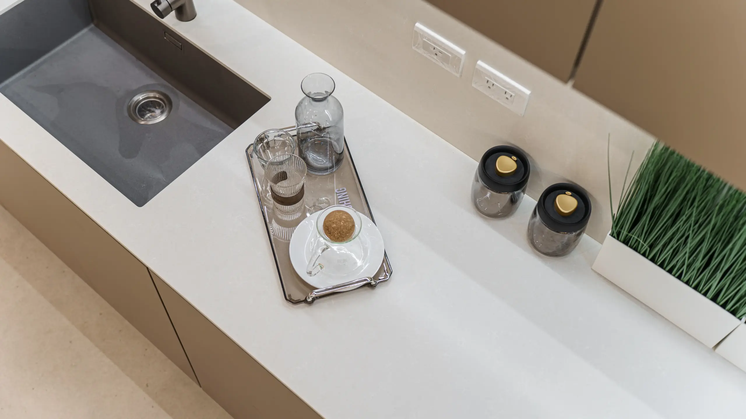 門市展間由呈勖使用義大利LEVEL廚房檯面