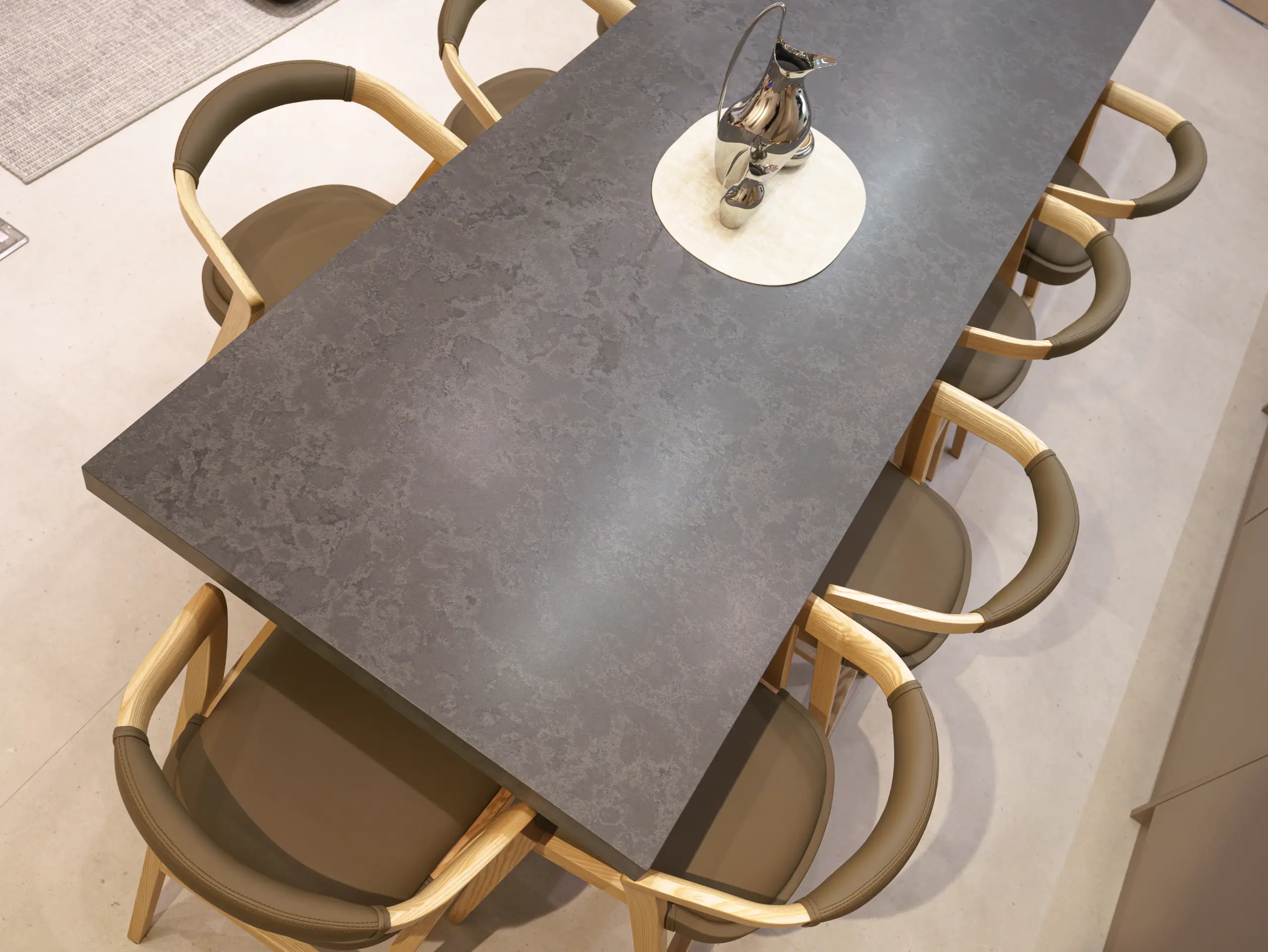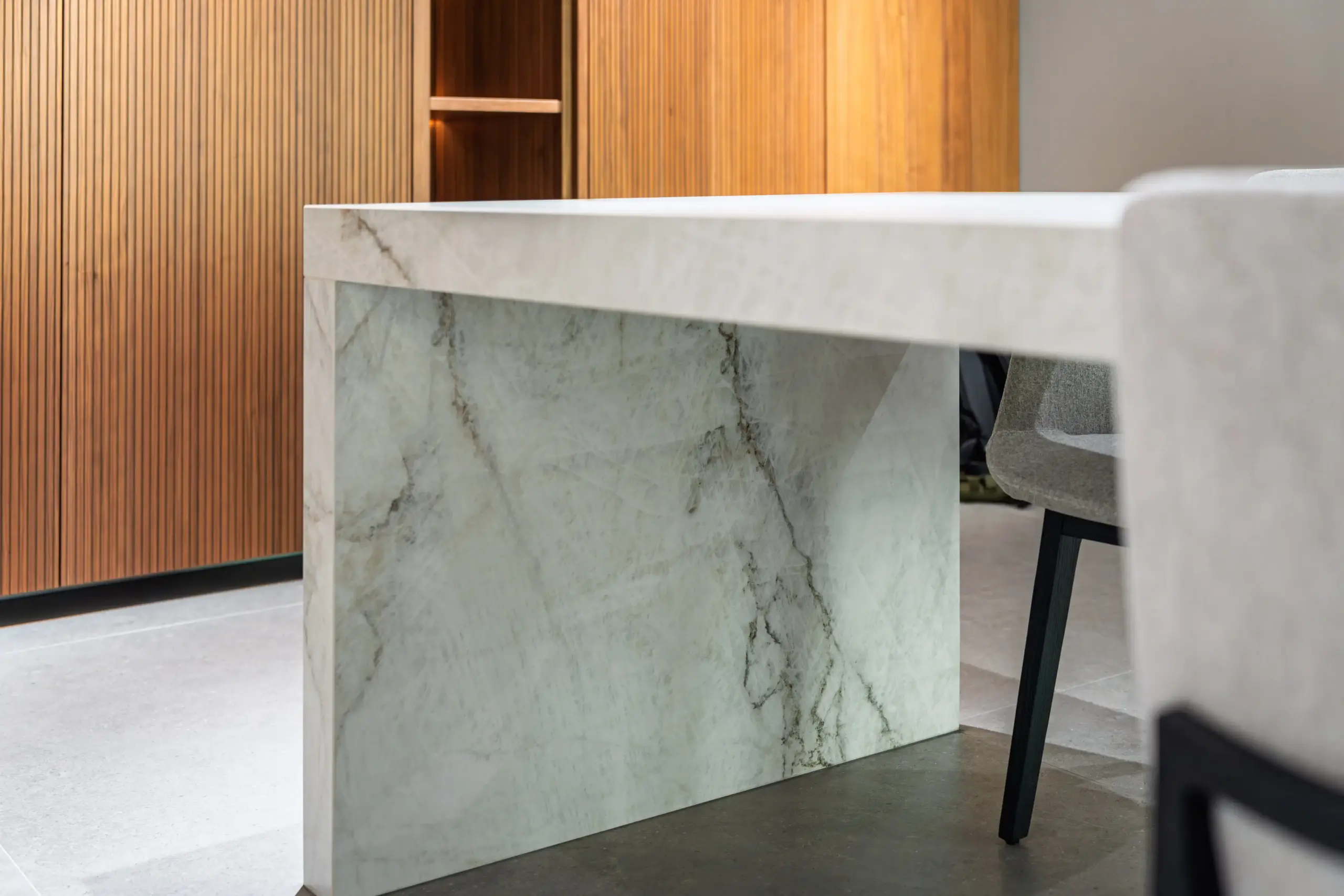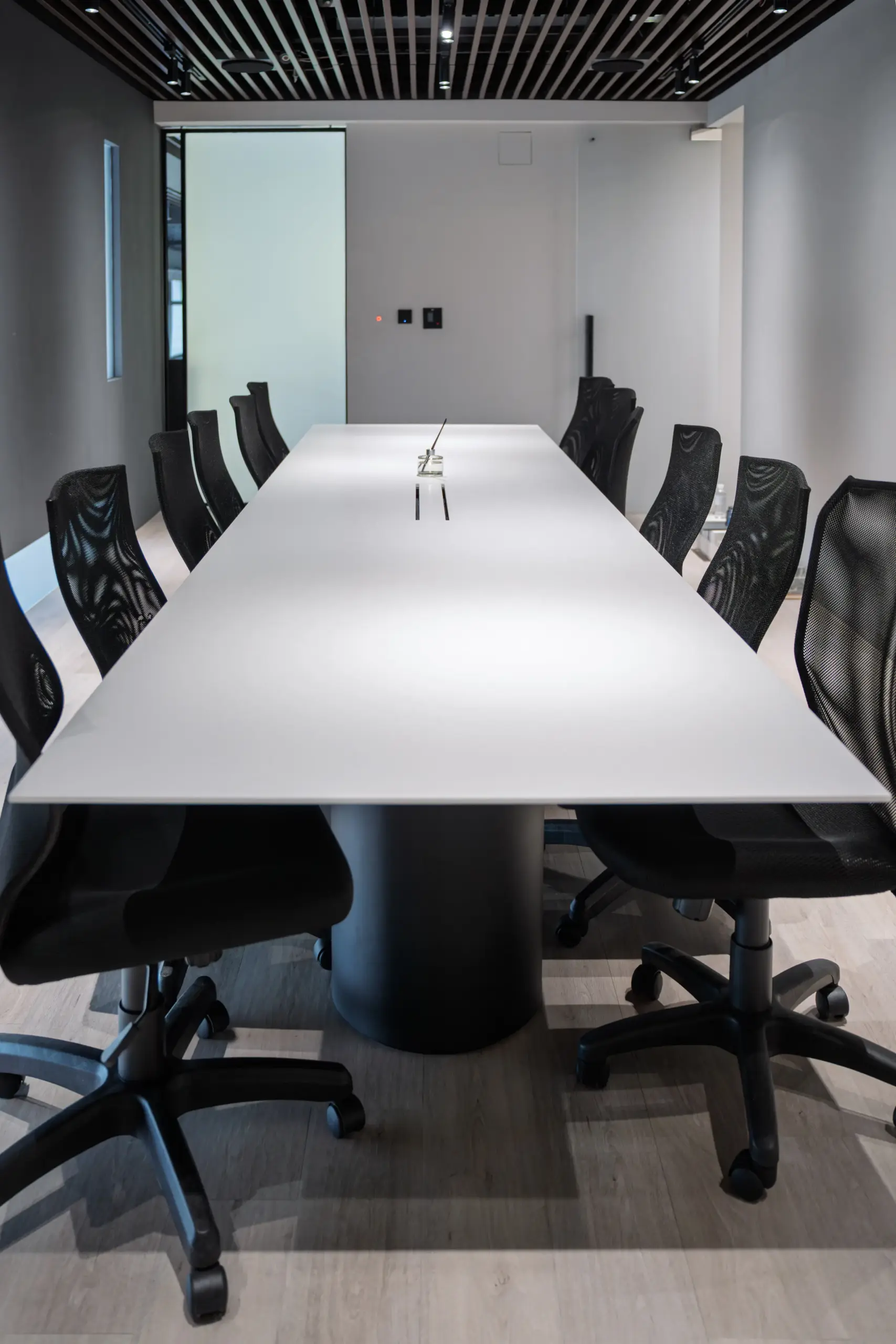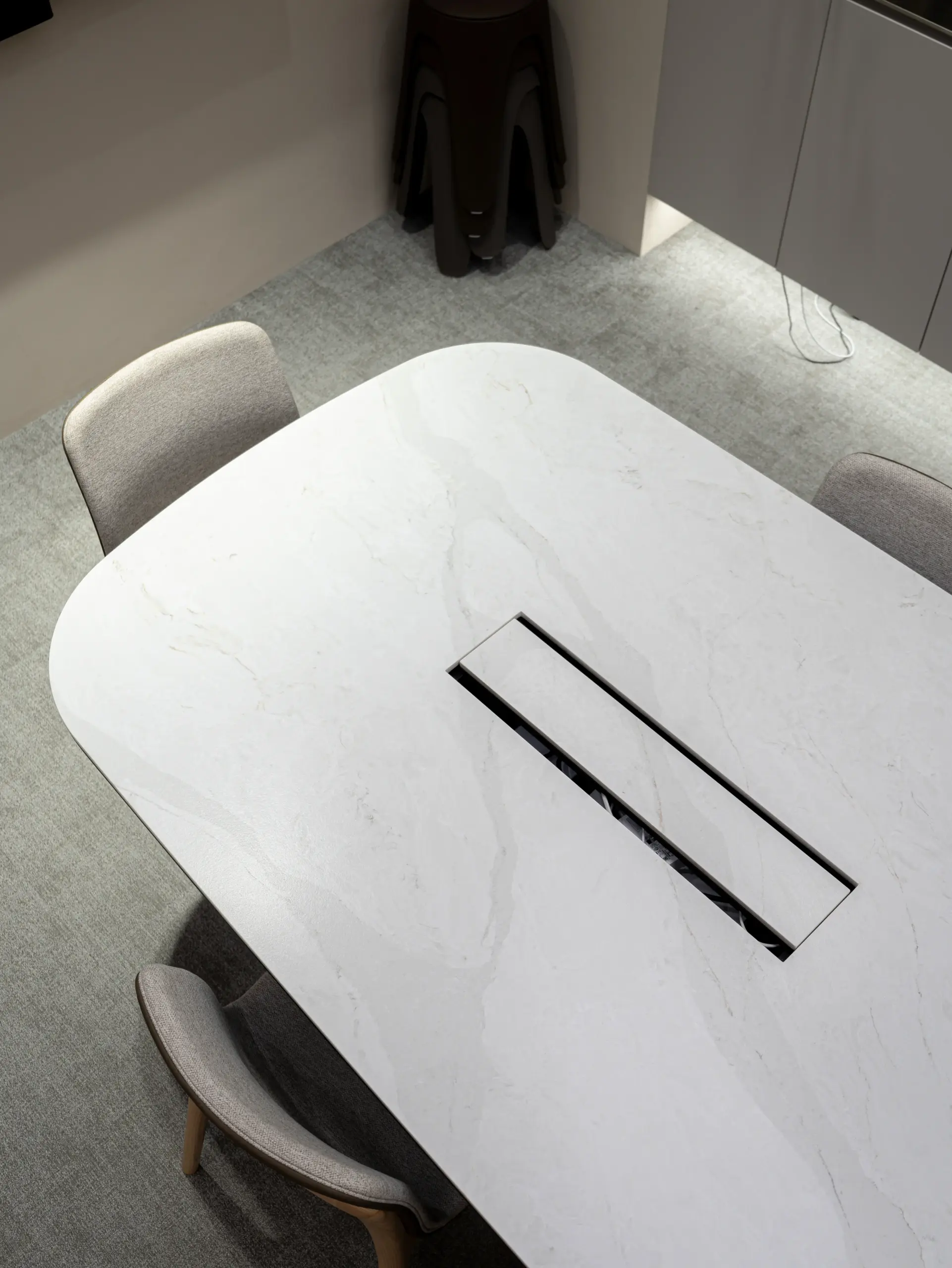 門市展間使用Vicostone會議桌與廚房、中島檯面
