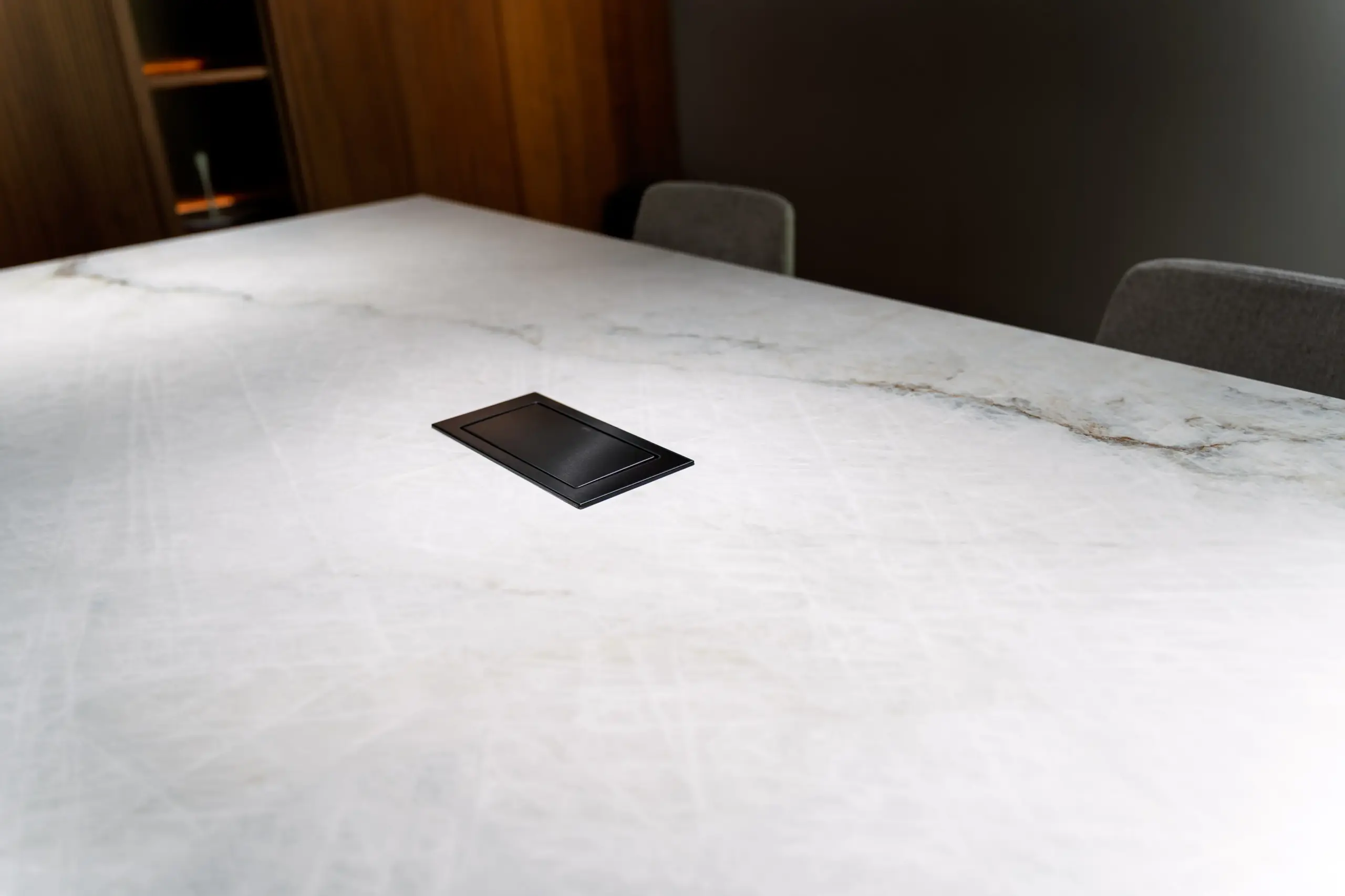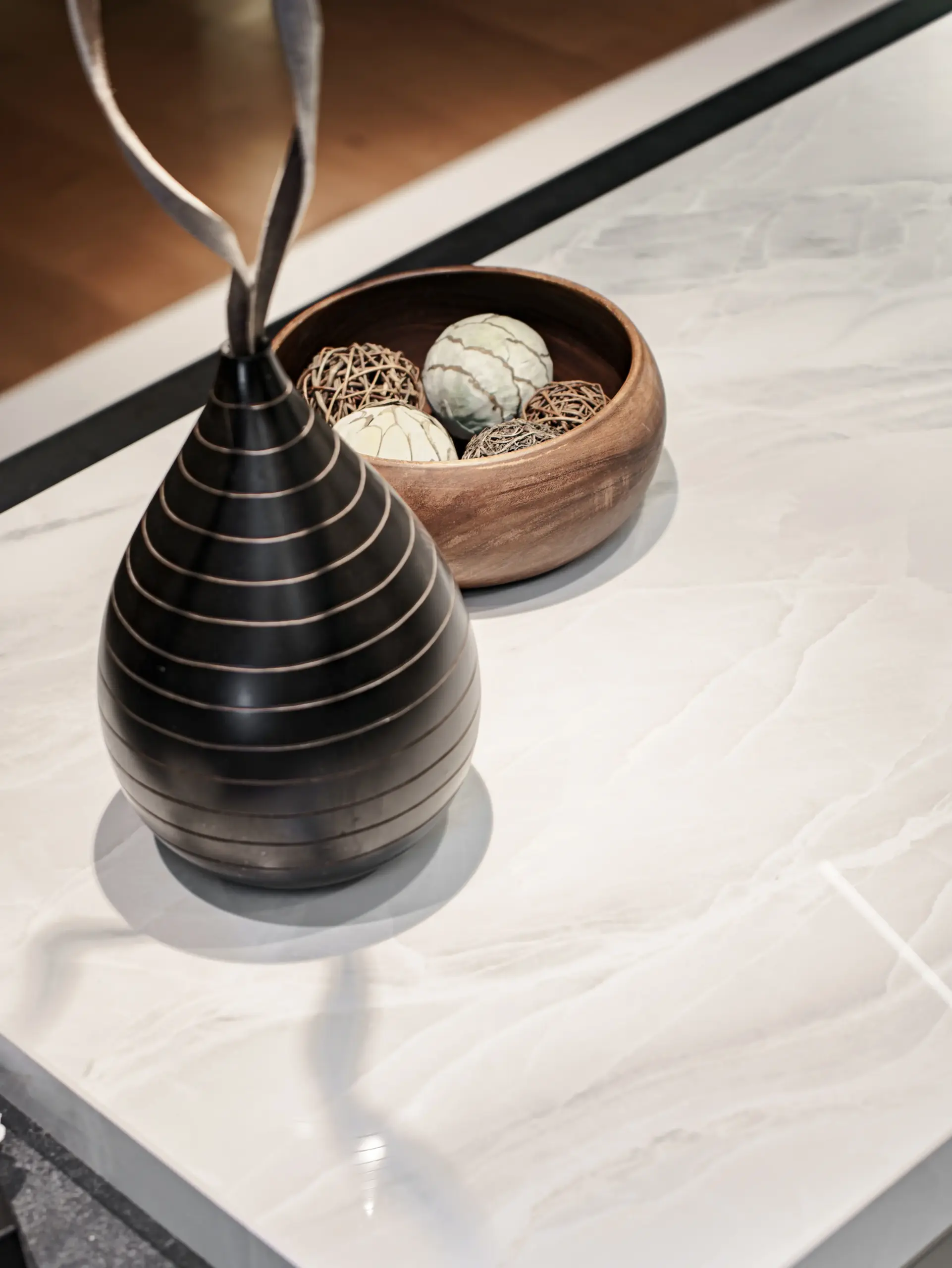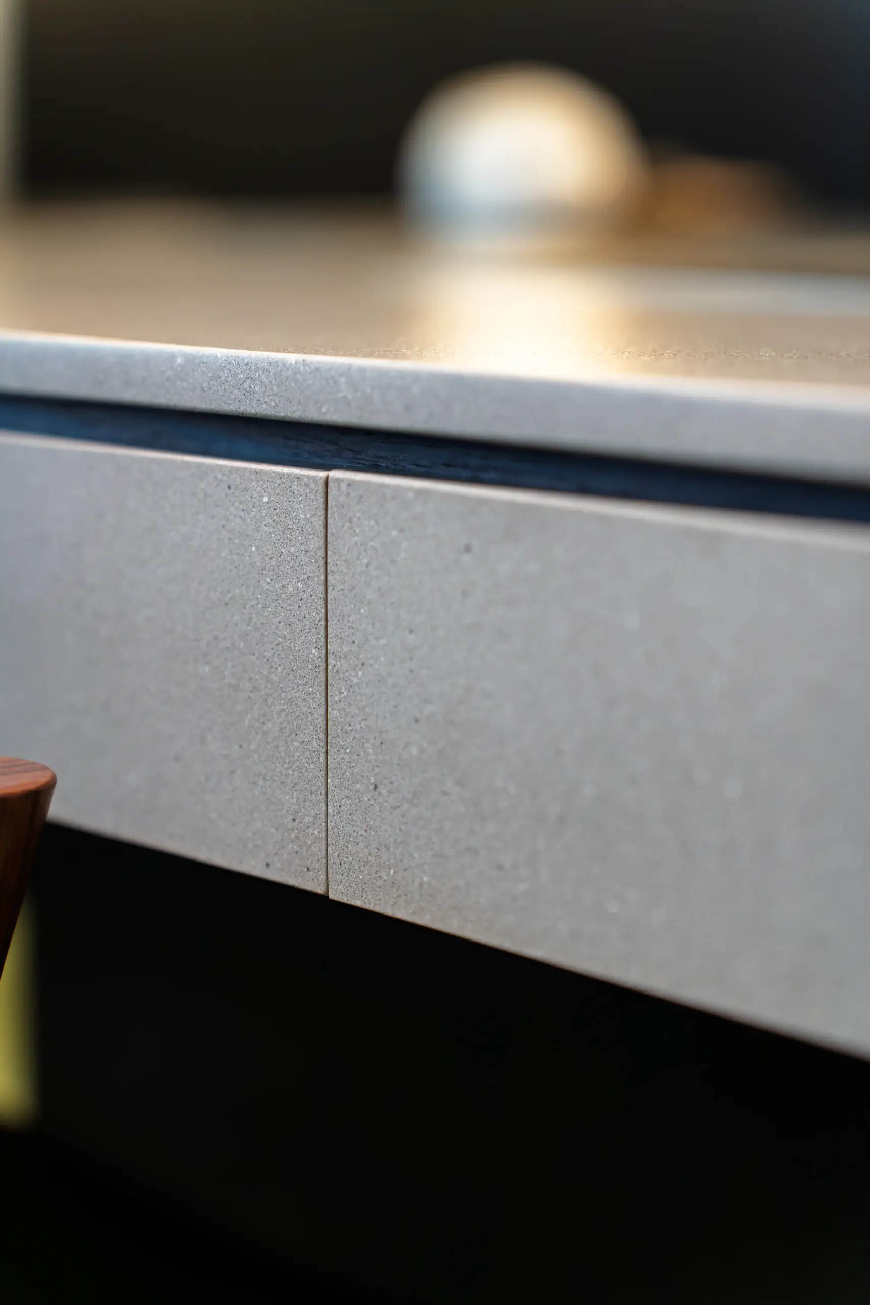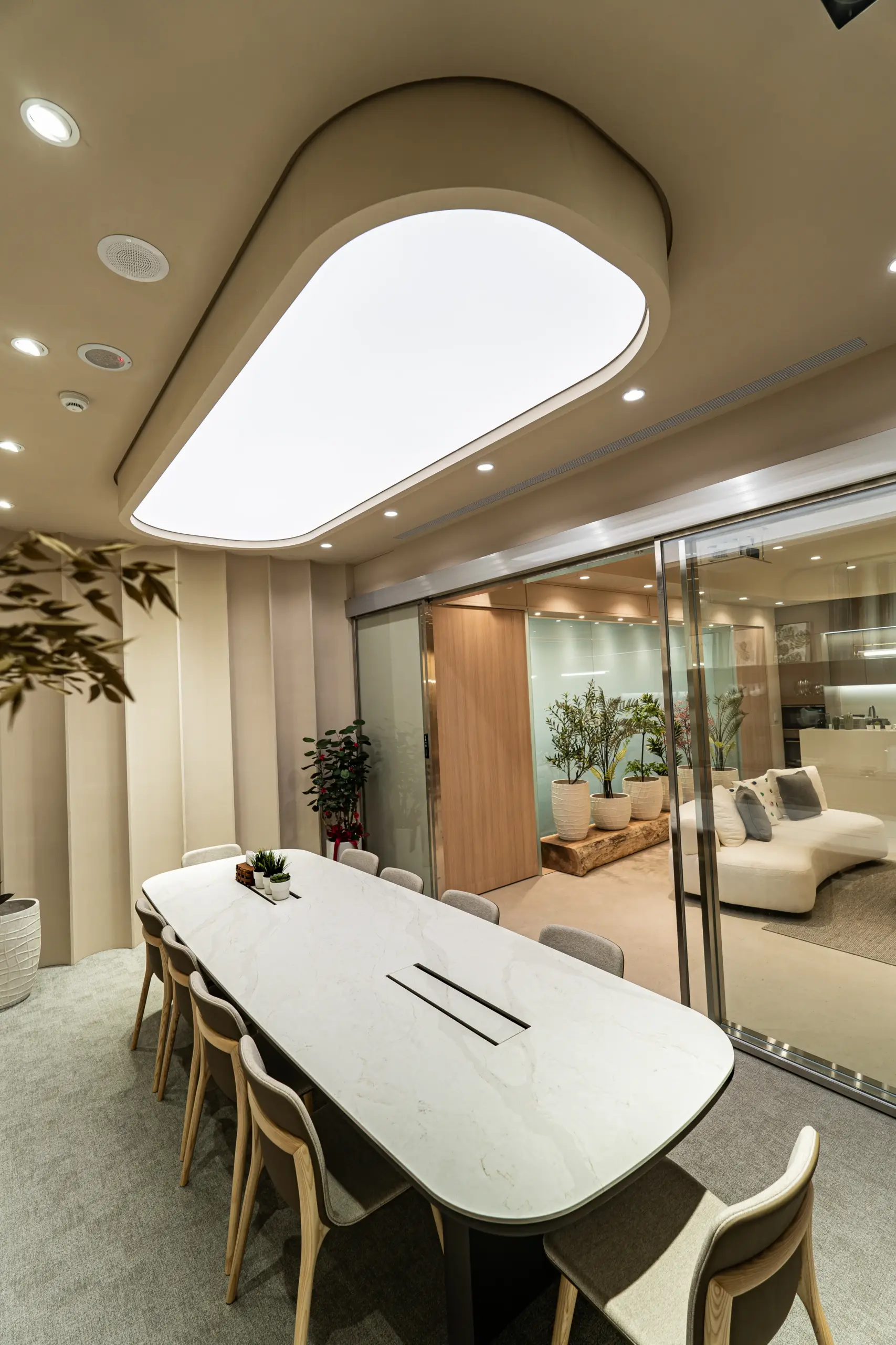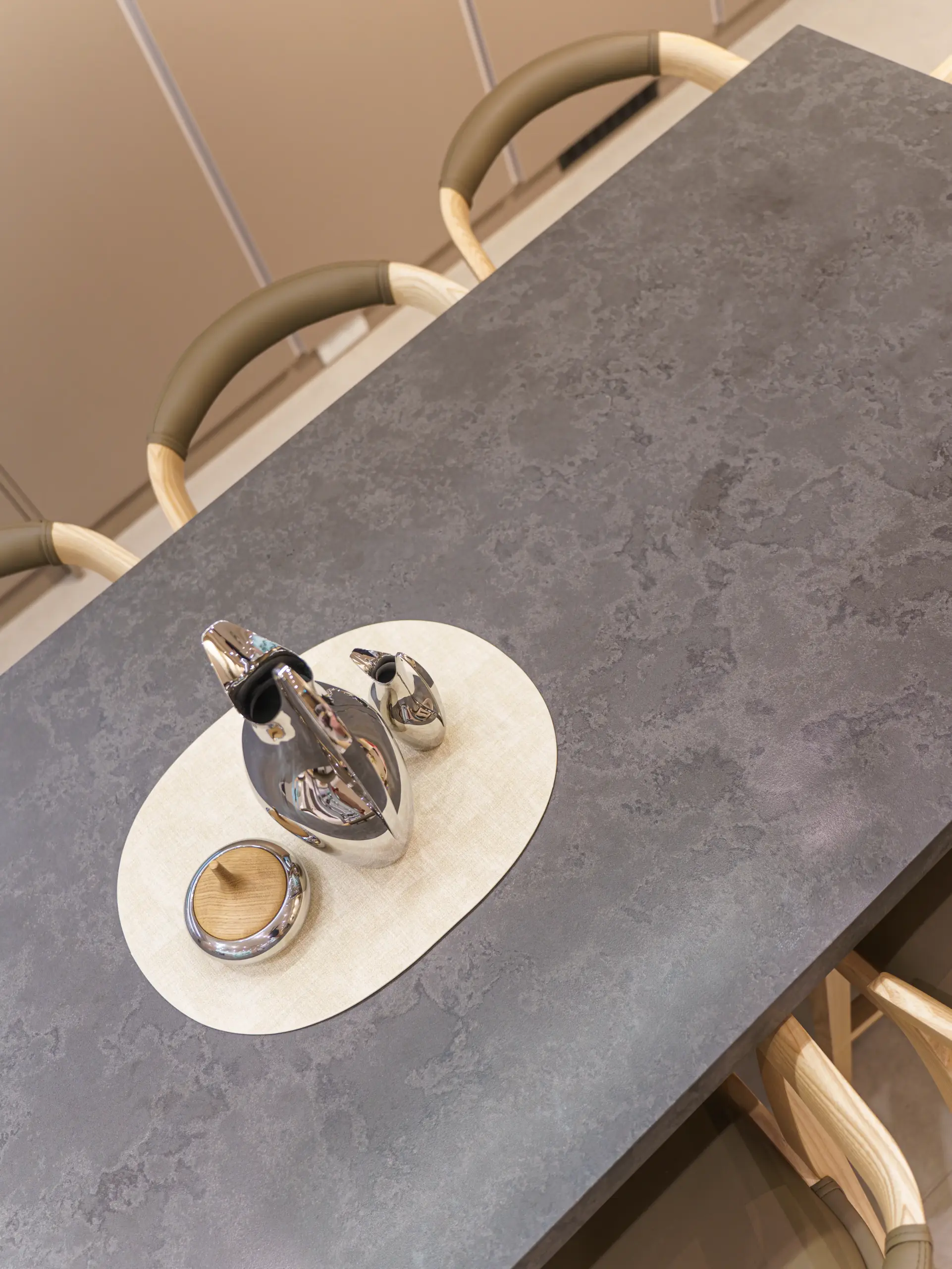門市展間使用Vicostone會議桌與廚房、中島檯面