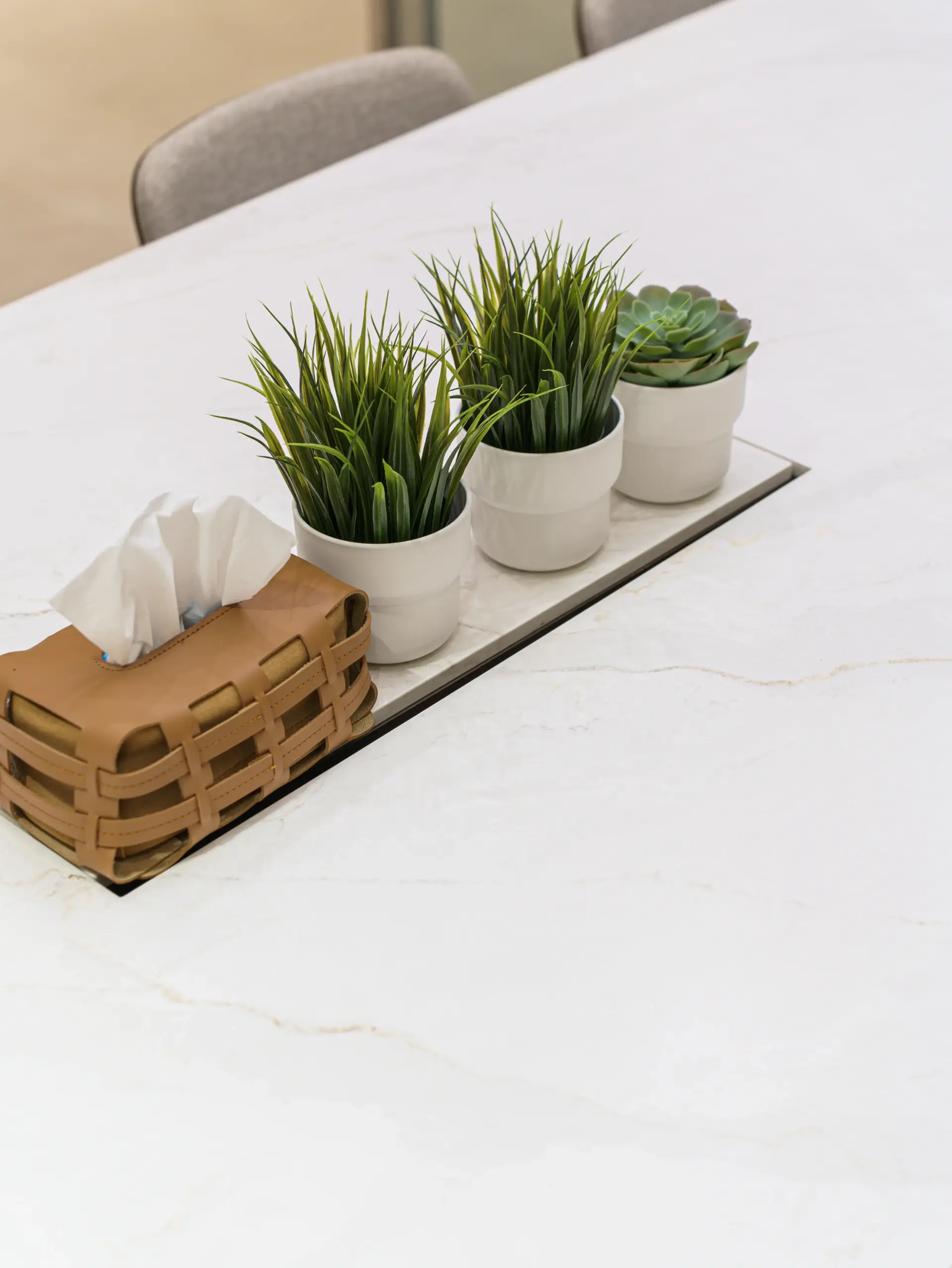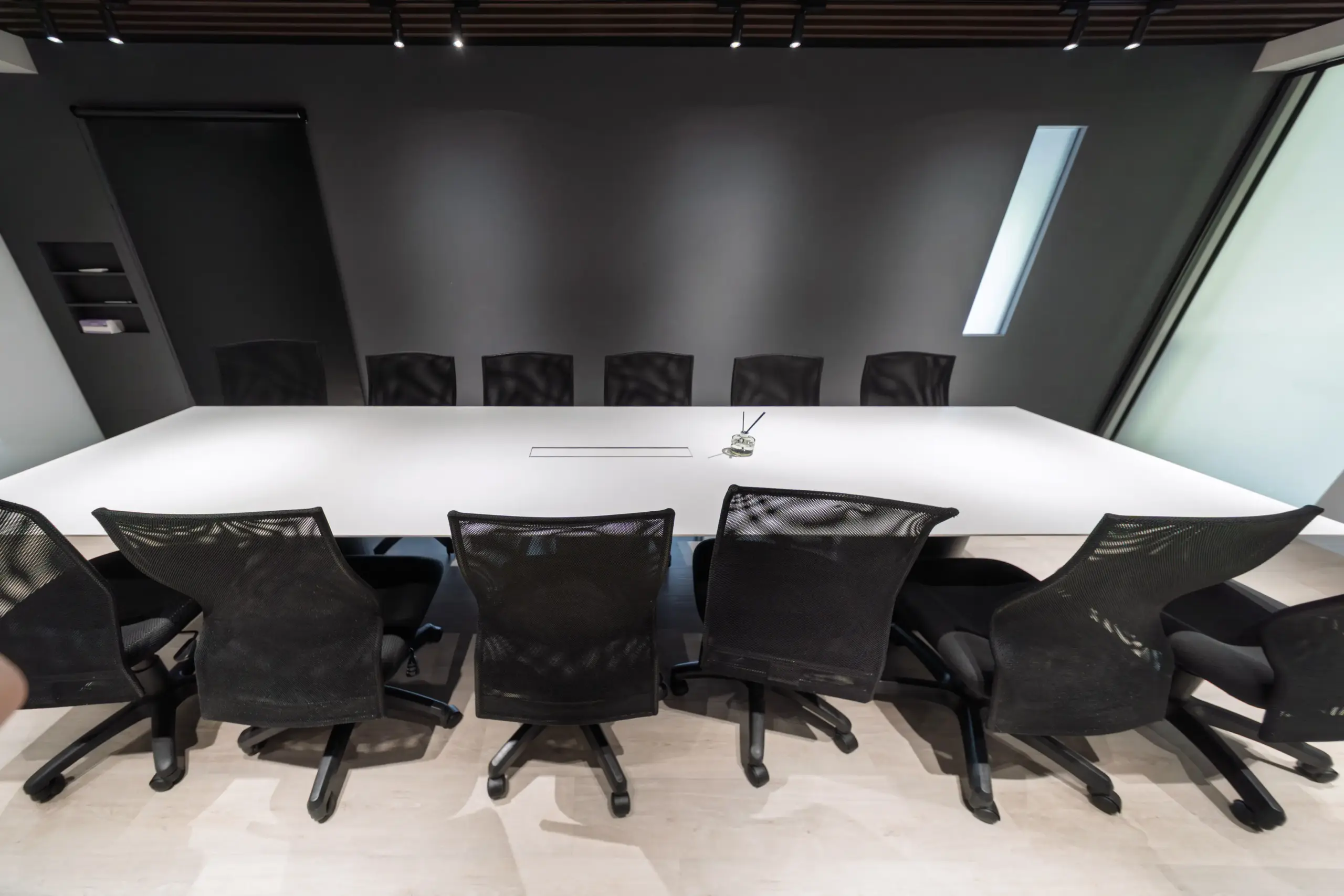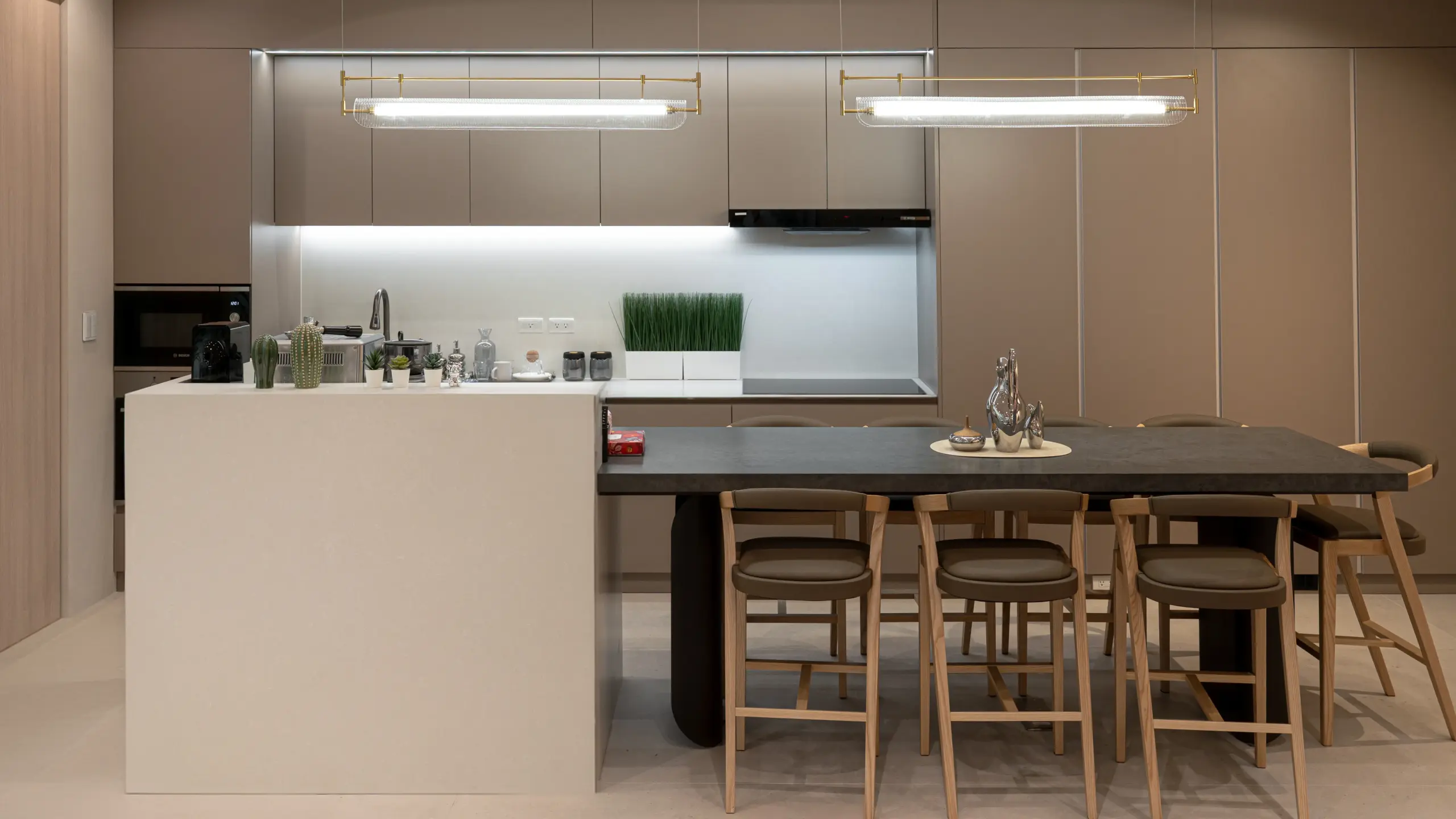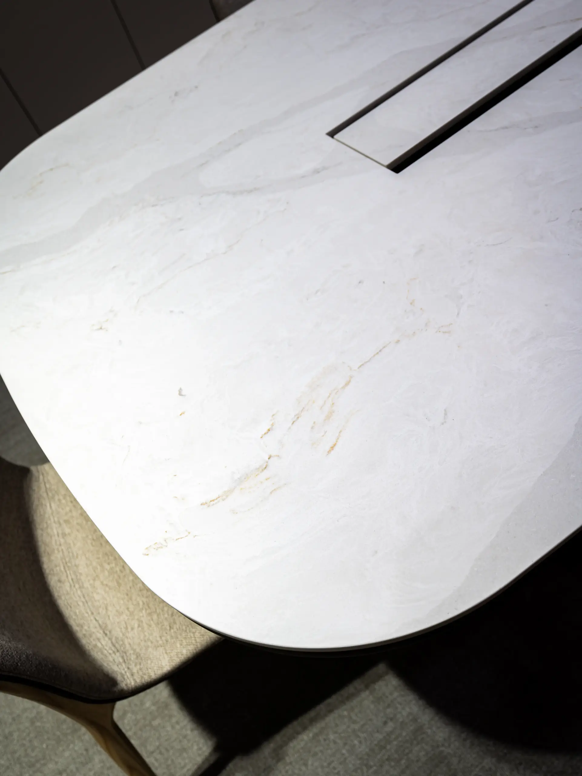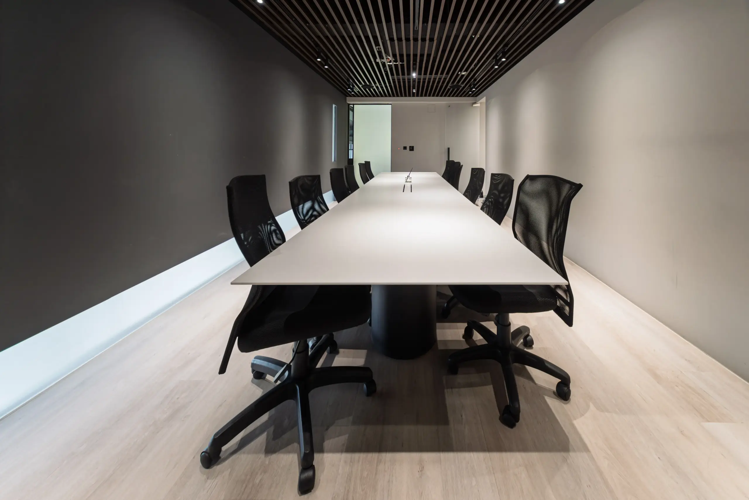 門市展間使用Vicostone會議桌與廚房、中島檯面