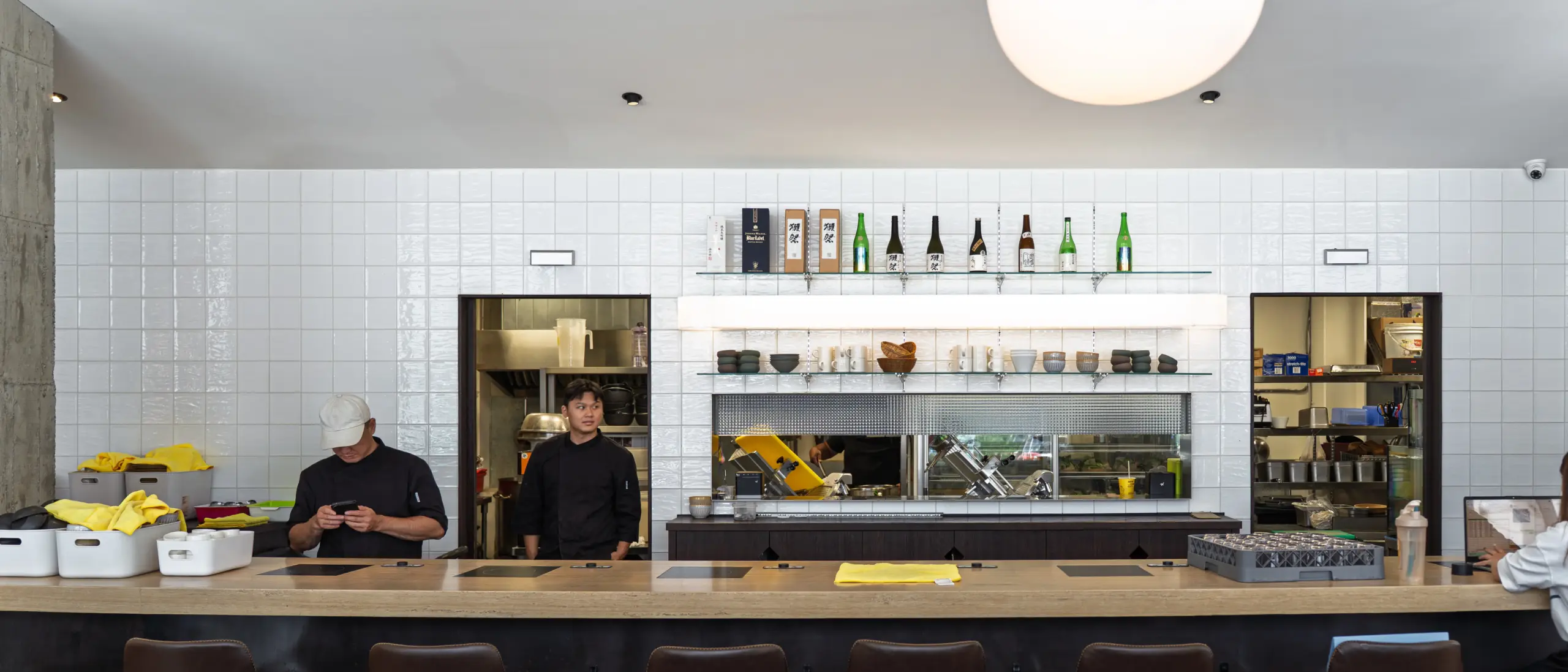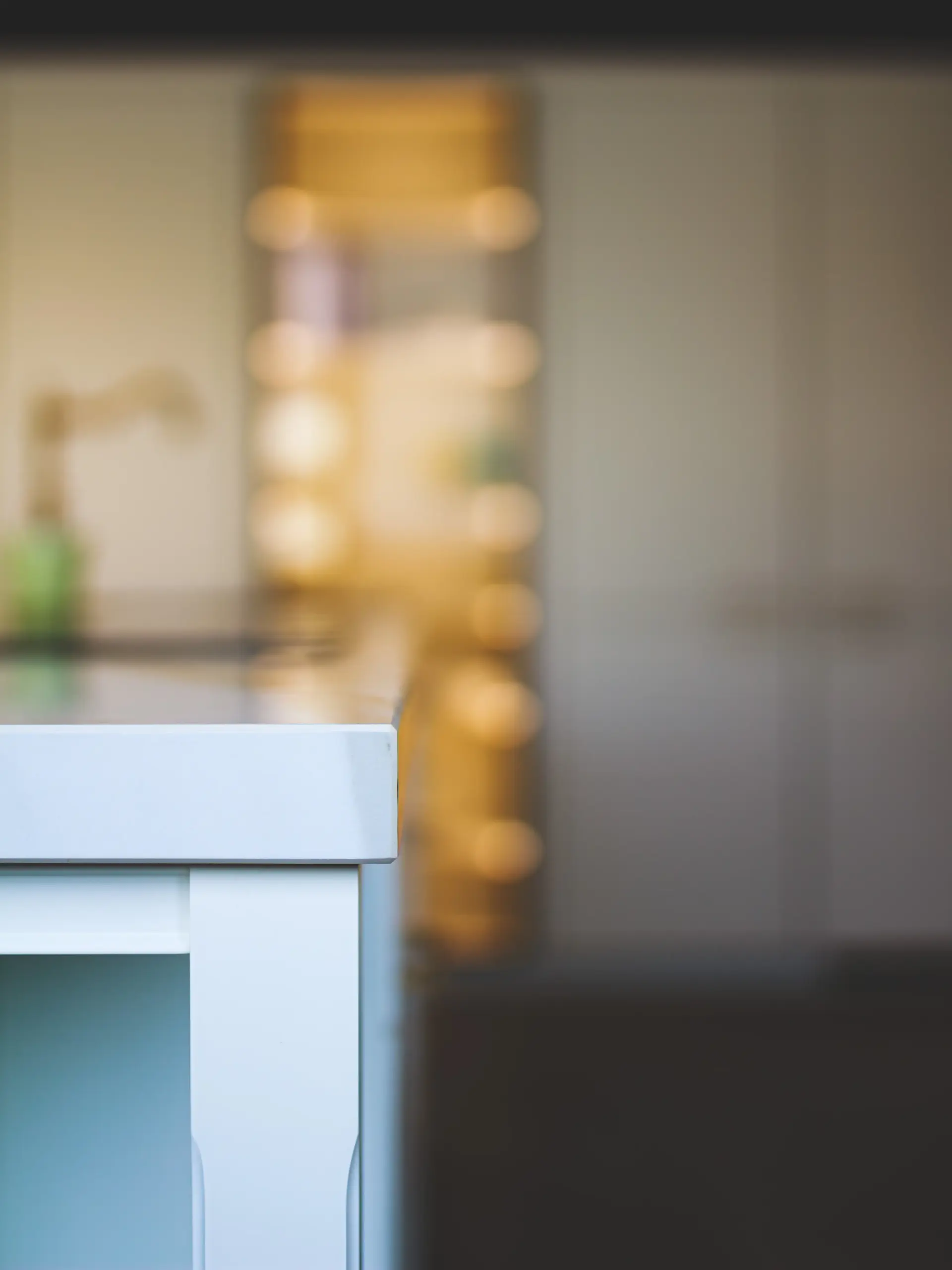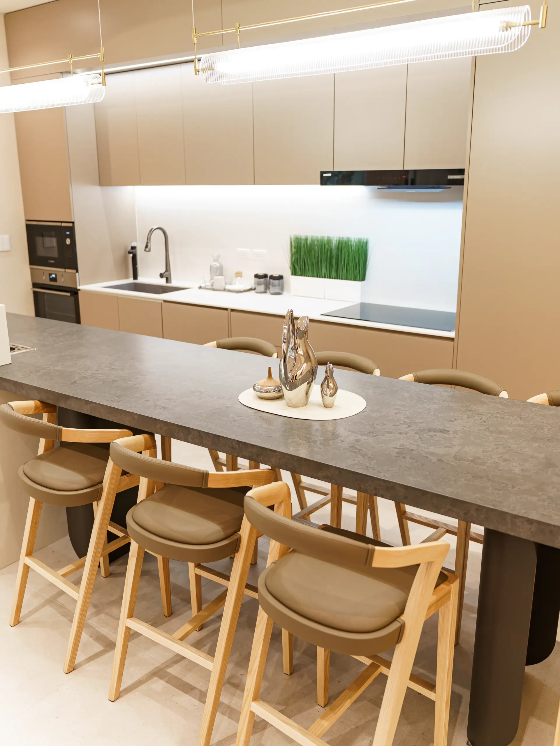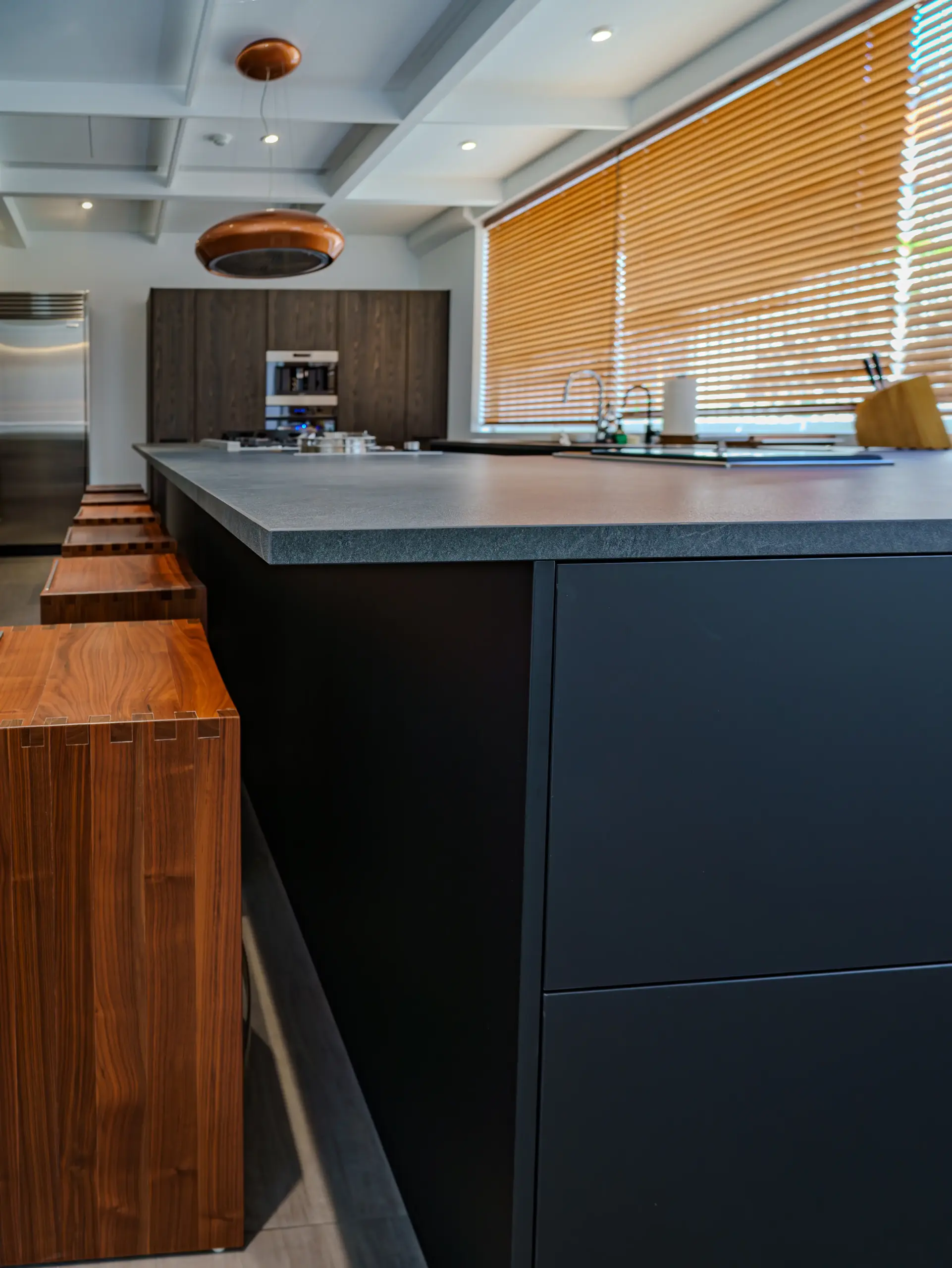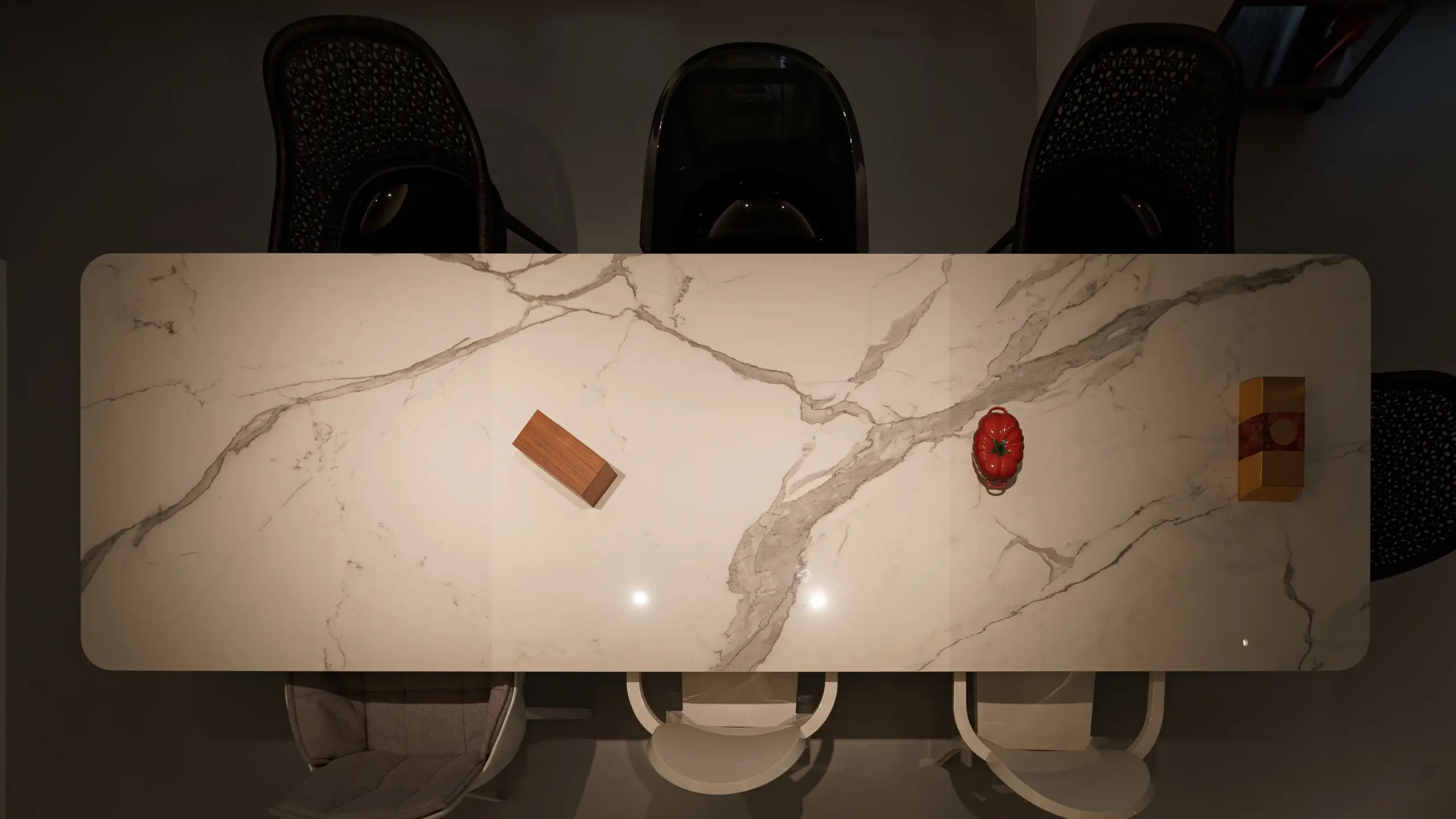 門市展間使用Vicostone會議桌與廚房、中島檯面