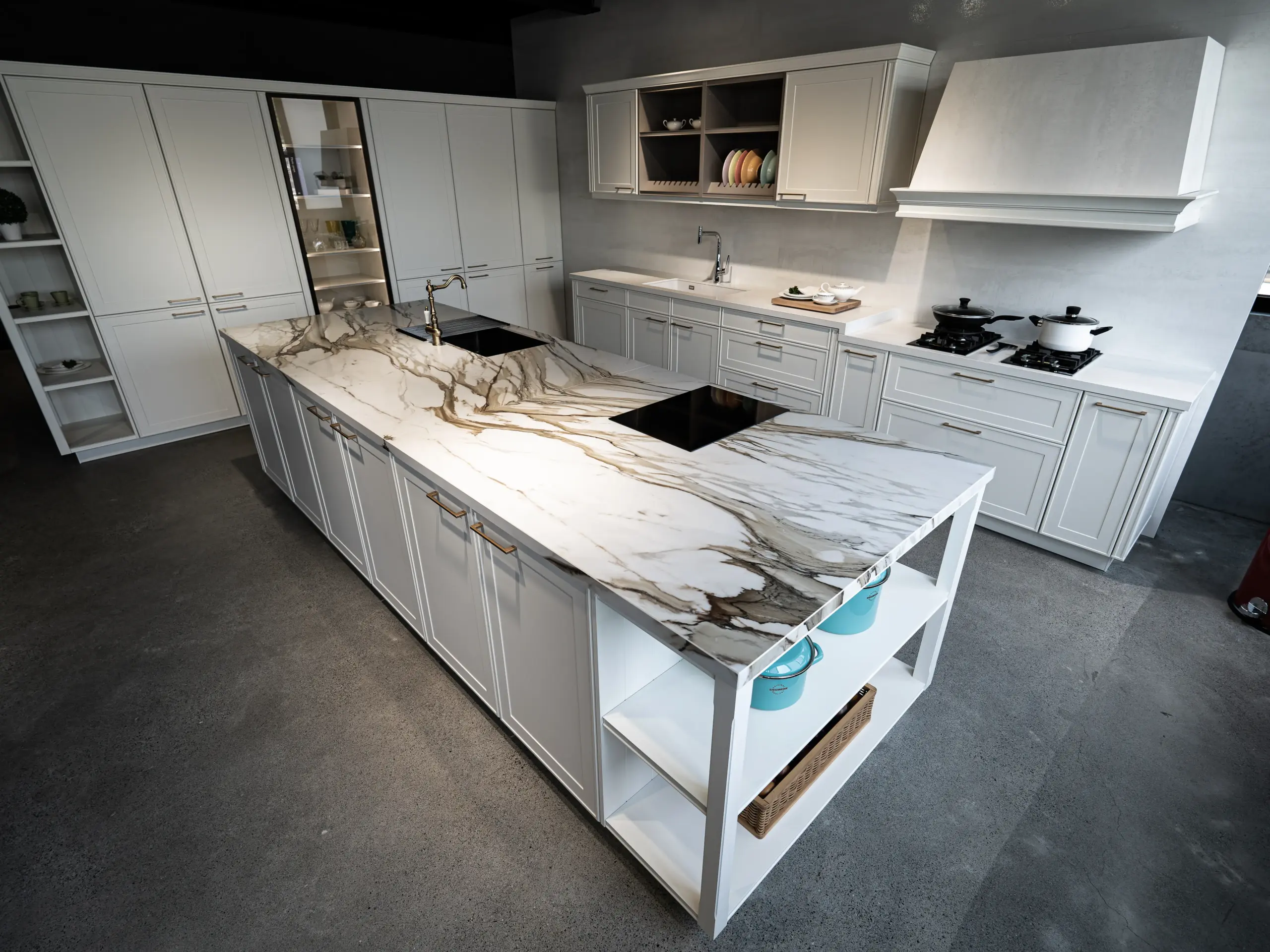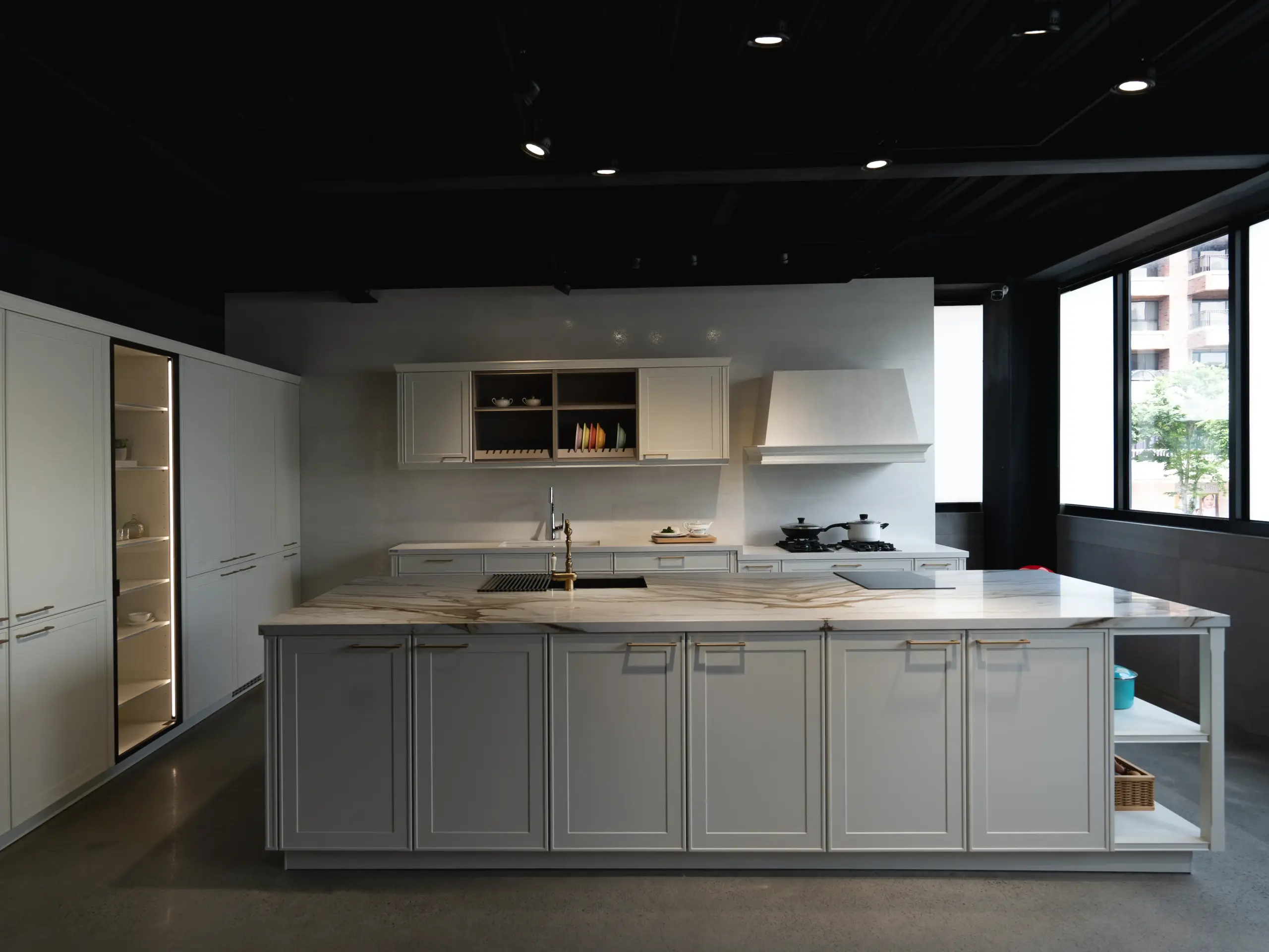 門市展間由呈勖使用義大利LEVEL廚房檯面、中島